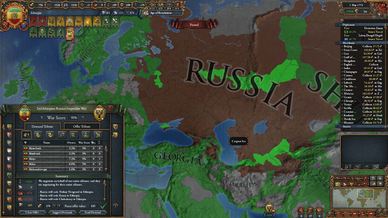 | Chagatai | 1779/05-1780/03 | Timurids | Chagatai | 1 | 啓蒙君主制に変更→Venice・蜀併合完了 |
