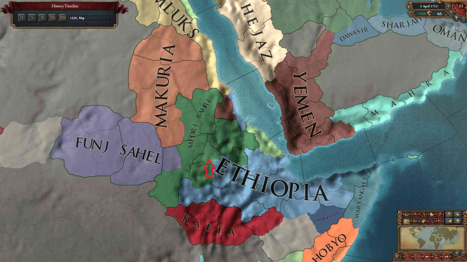GC開始時はEthiopia領だったユダヤの州(SEMIEN州はコプトに改宗されていたので残り1州)をMedri_Bahriが獲得していた