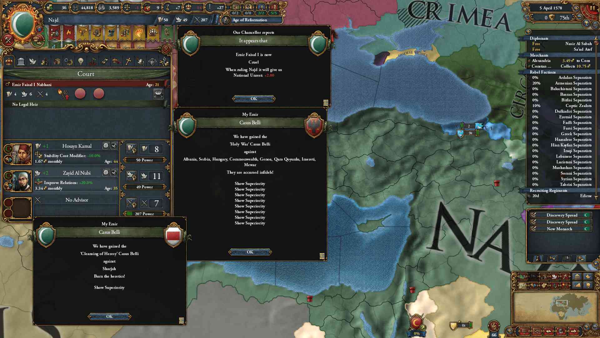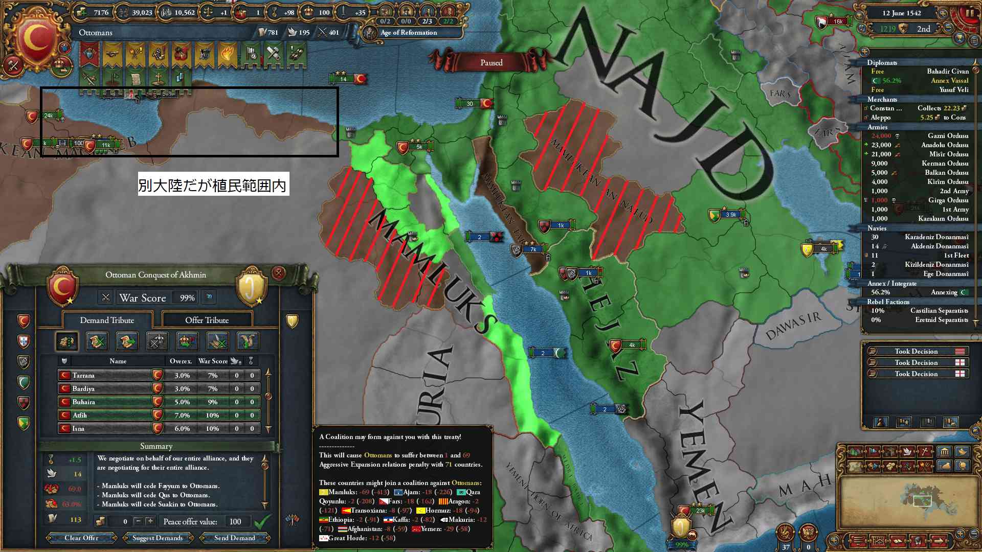 なるべく上記のことに気を付けてはいたが、和平交渉で直接属国(Najd)に割譲させるしかない場合もある