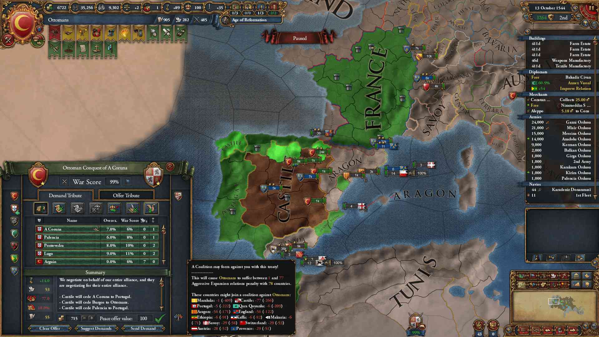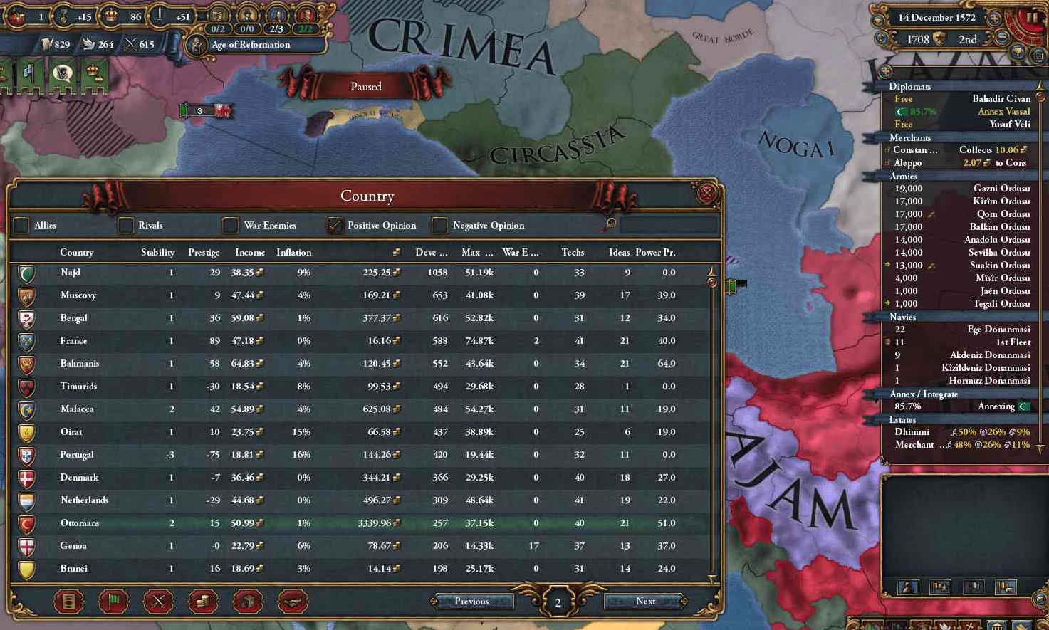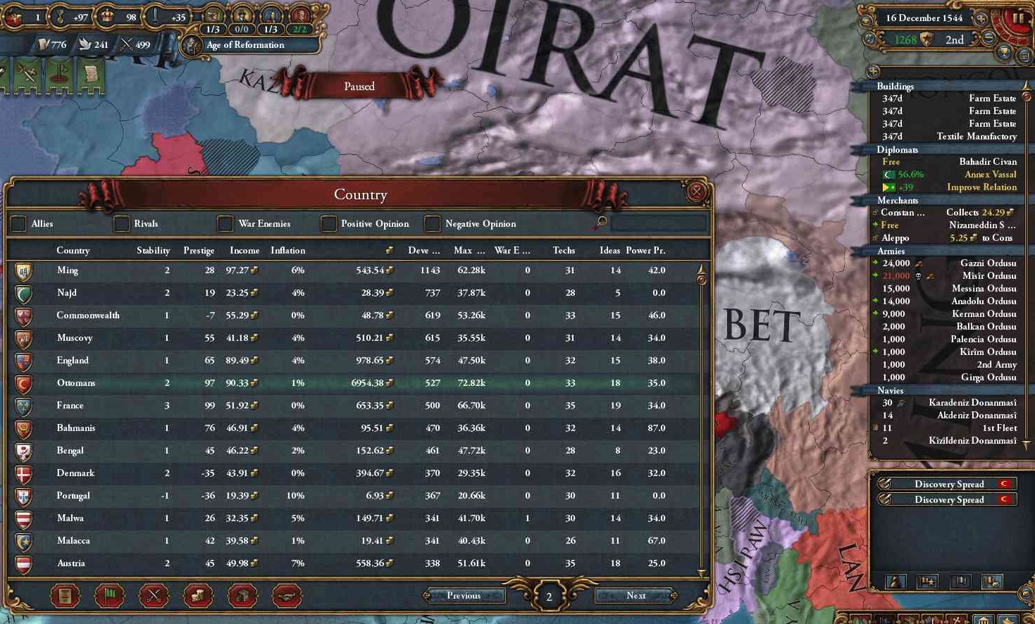 現在のNajdのDev合計が1058で必要な外交点が4352点。首都(Dev16)を除いたOttomansのDev合計は257-16=241