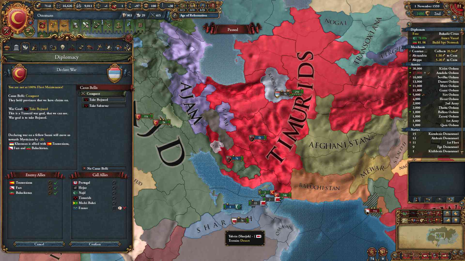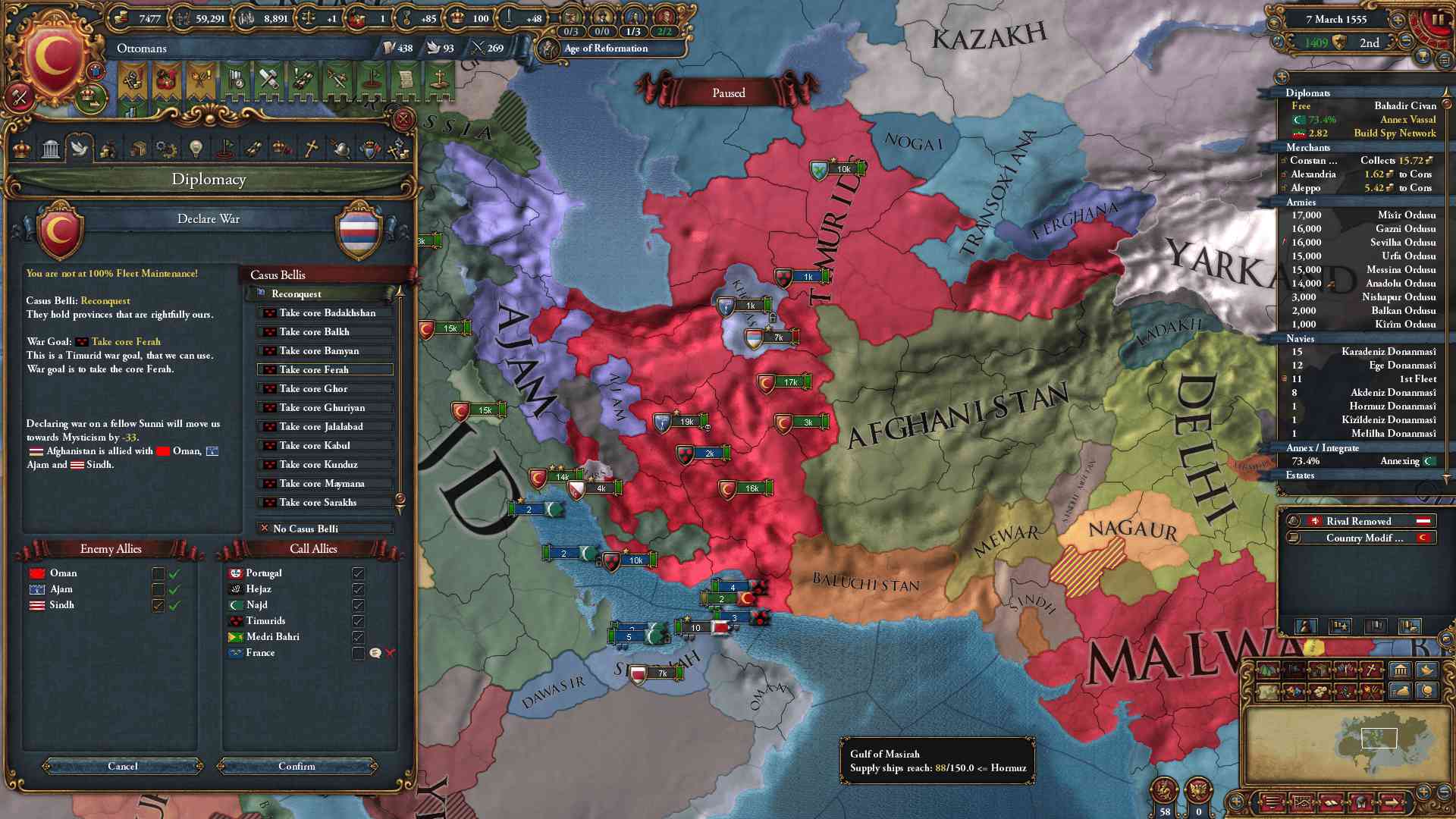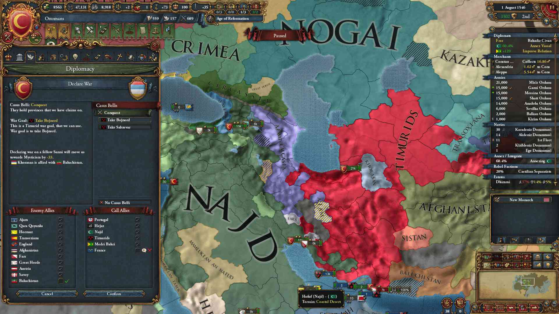 Najdになった後スムーズにMughals化できるように、Sindh領が欲しかったため共戦国に指定(Sindhの同盟Kazakhも参戦)