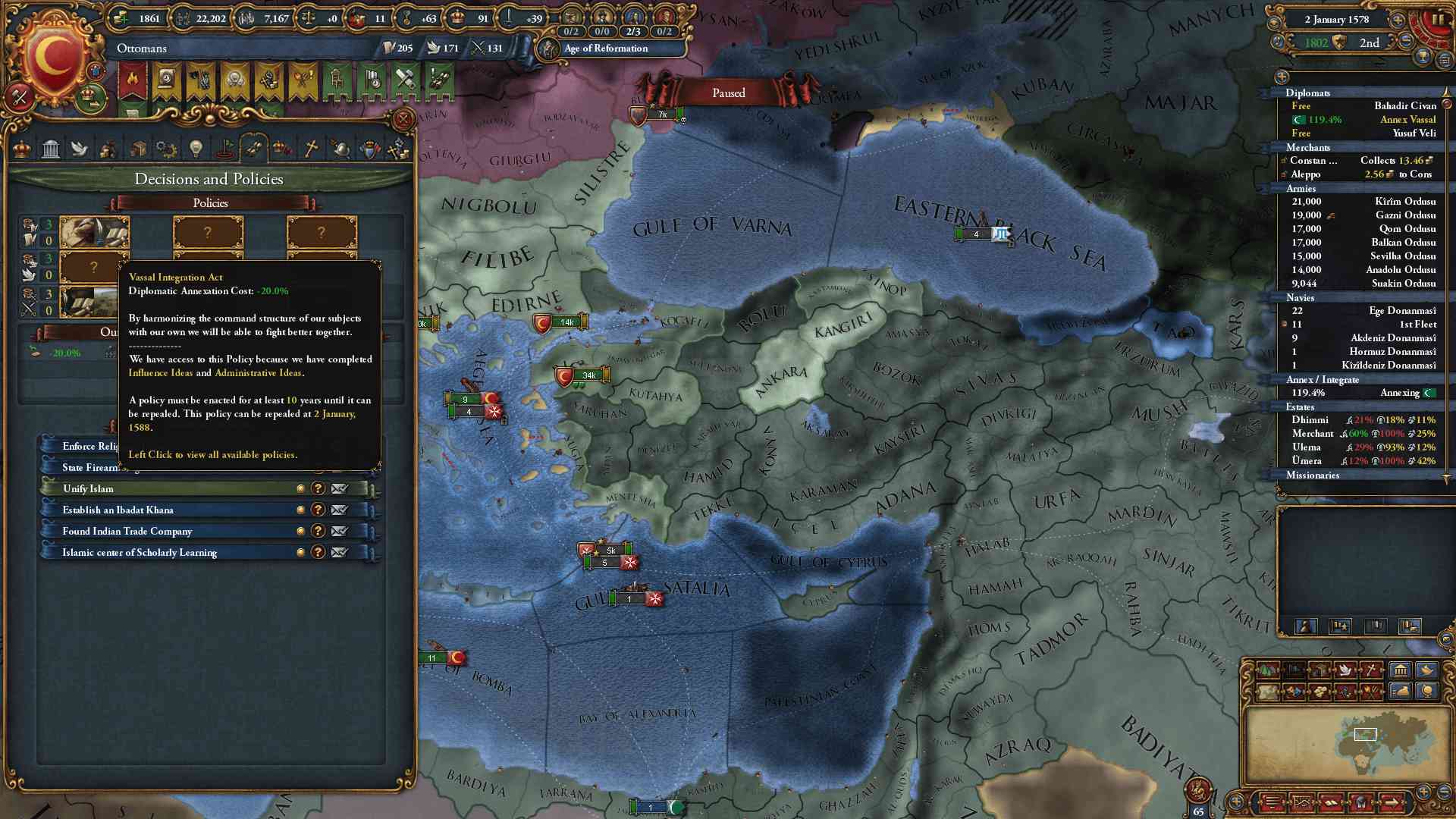 1554/01 影響アイデア完了。ポリシー"Vassal_Integration_Act"が利用可能に(まだ採択はしない)