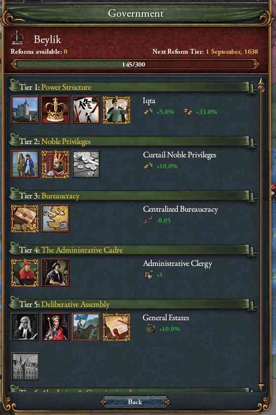 これも達成のタイミングを外してしまっている。条件はもっと早く満たしていたはずなので 直轄領が減る前の国家収入が高かった時期にクリックしていれば、ボーナスもずっと大きかったと思う