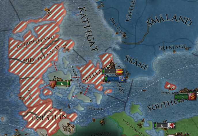 オーラヴ5世はデンマークの富の源泉であるエーレスンド海峡の通行税*3の奪取を目論み、侵攻を開始した。
