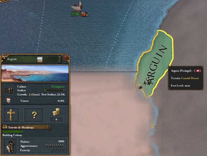 暗黒大陸探検の際に見つけたポルトガル入植地。 好戦的な原住民に過酷な気候。年間入植者が0だがこれでも数年後にはきちんと成り立っているというラッキー国家のチートが羨ましい・・・