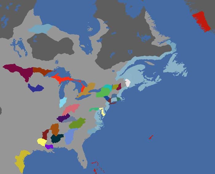 北米の状況 東岸はほぼ独占決定。このままミシシッピ川河口付近まで独占できそうな雰囲気。同時にハドソン湾にも進出を始める。