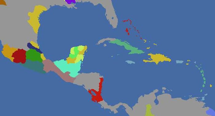 中米、カリブ海の状況 カスティーリャとポルトガルの2強。カスティーリャは中米部族国家への征服を開始。 イングランドも中米にそこそこの拠点を築く。ノルウェーはカリブ海に4島だけ所持。
