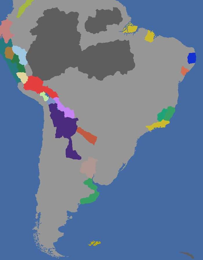 南米の状況 カスティーリャ、ポルトガルの他にフランスも入植を開始。フランス植民地内に海軍軍需品が出ないことを祈る。