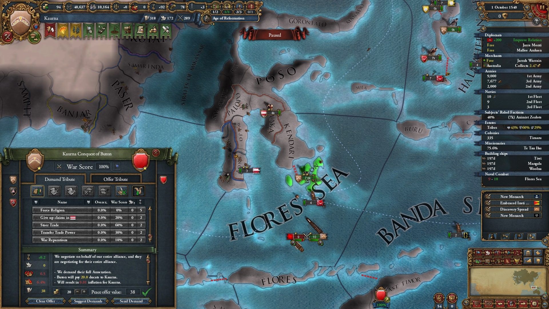 東南アジア諸島部はマラッカと同盟しつつなるべく漏れが無いように侵攻、1600年を目安にマラッカを撃破して大陸部に入る狙いです。