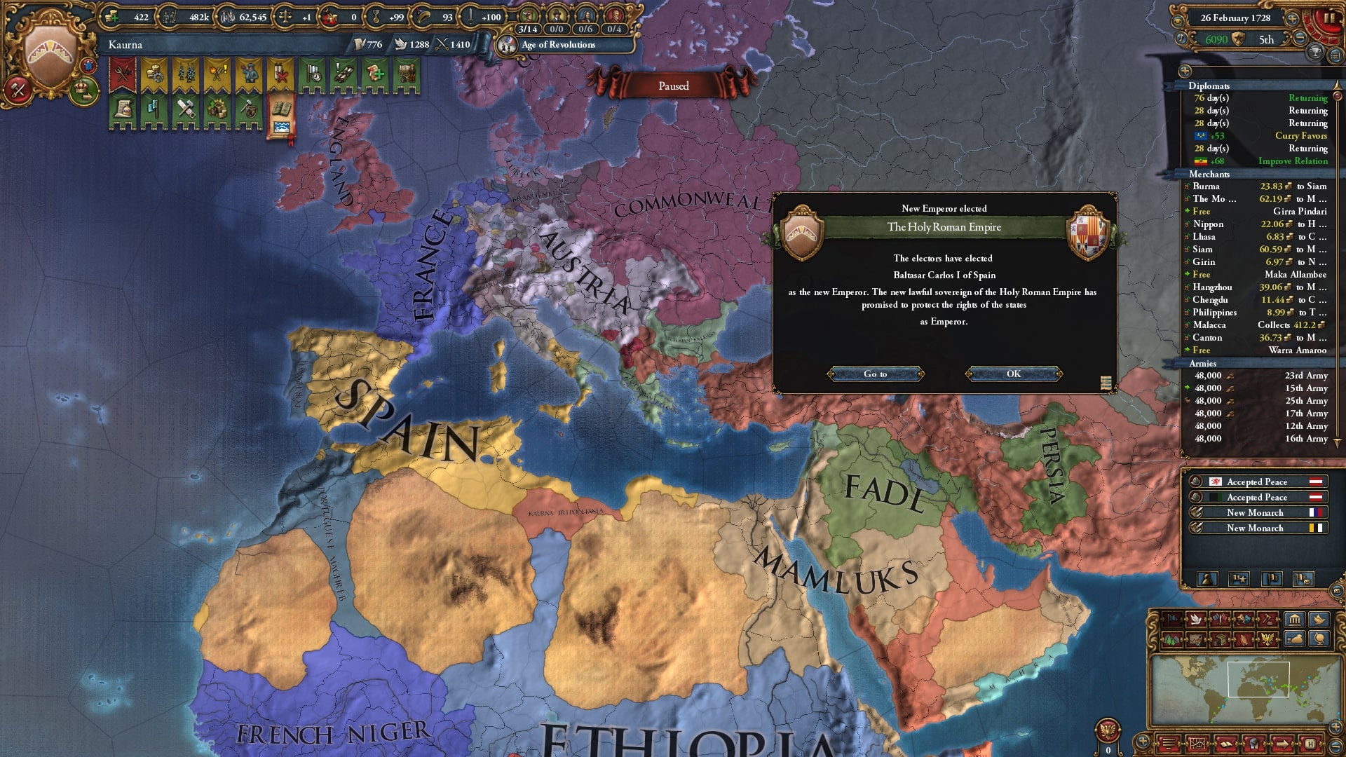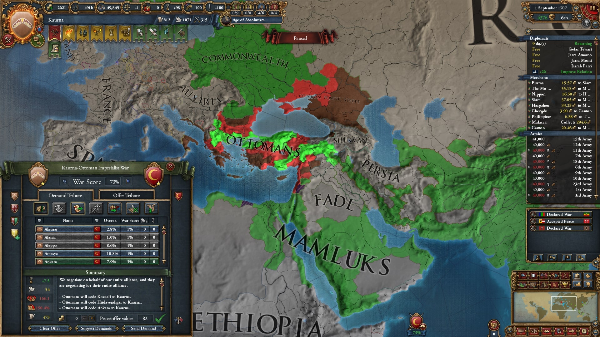 1707年に欧州に到達。ただ中東はほとんど確保できていない上に軍量が少なく(600~700k?)、かなり戦争がしづらいです。