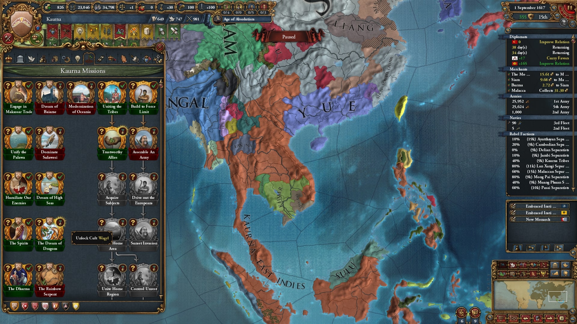 マラッカ戦後、大理から獲得した州の改宗が終わり、カルト:Wagylを解放しました。
