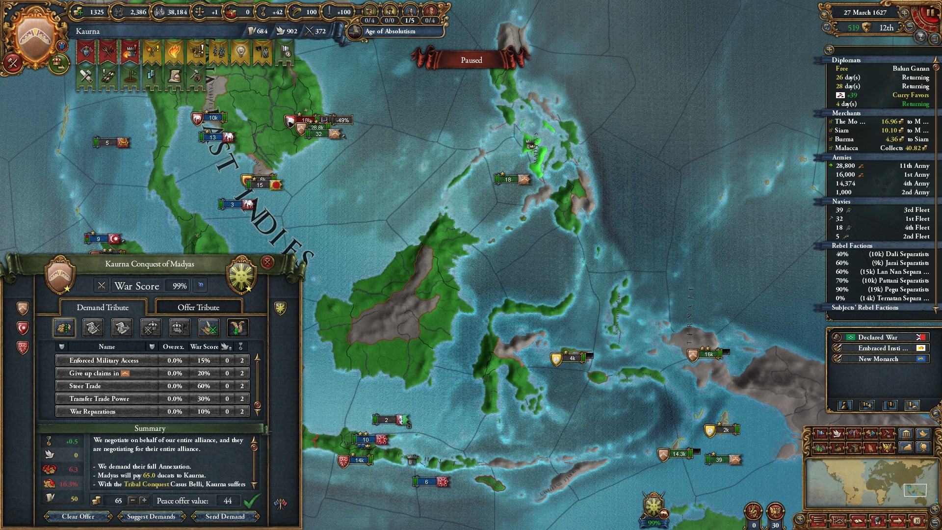 東南アジアの小国を片しています。テルナテ、植民してくれてありがとう。全部もらっていくね。