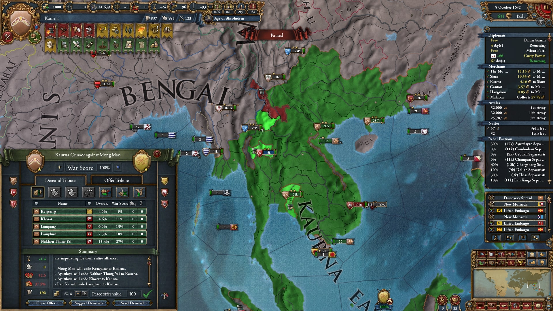 講和はラーンサーン/Lan Xangに隣接するように講和、AEは既に包囲網を組まれるほど拡大。
