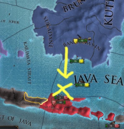 初手植民地にDemakを選んだのは、Majapahitと接しているからです。たとえ植民中でも領土が接していれば領有権の捏造ができます。