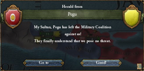 こちらが禁輸でもされていればCBも手に入ったのですが、MajapahitはBruneiが自らを超える海軍力、陸軍力を持つのを確認するとすぐに禁輸を解除してしまいました。