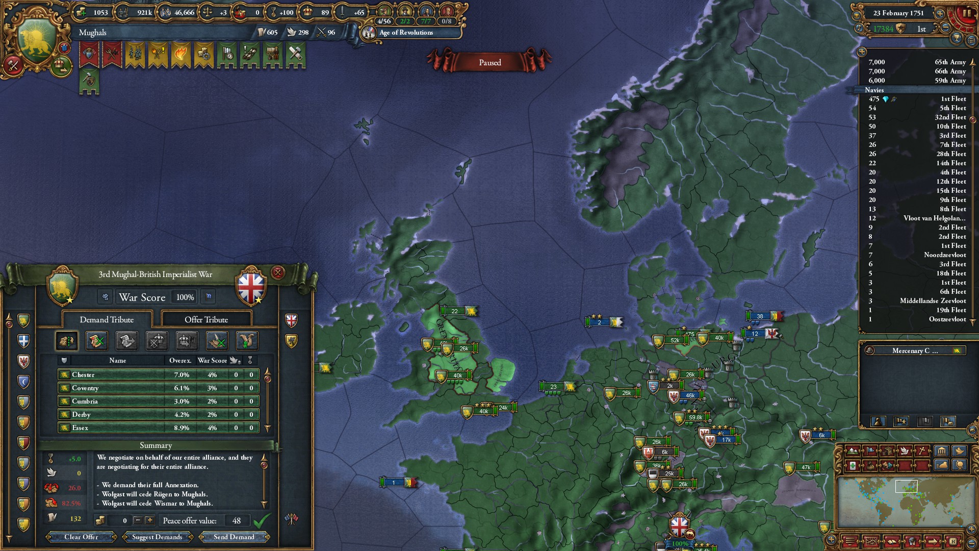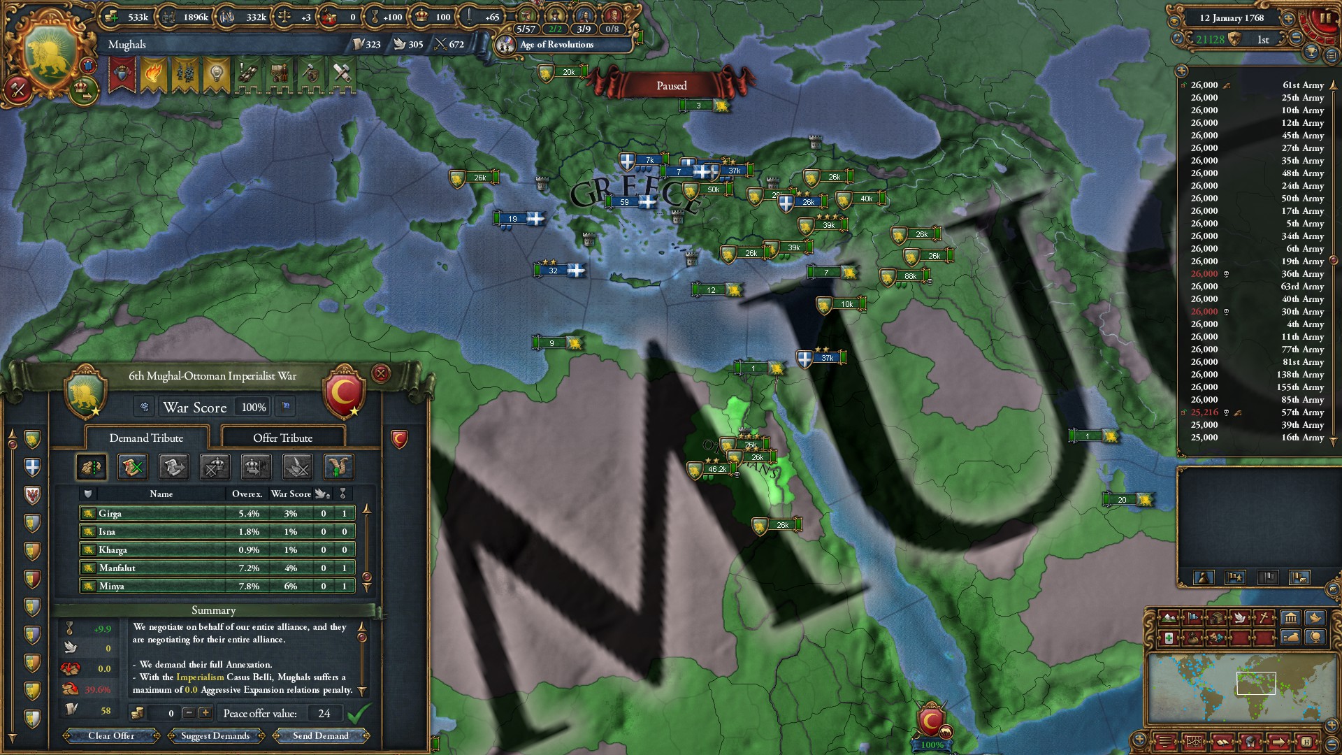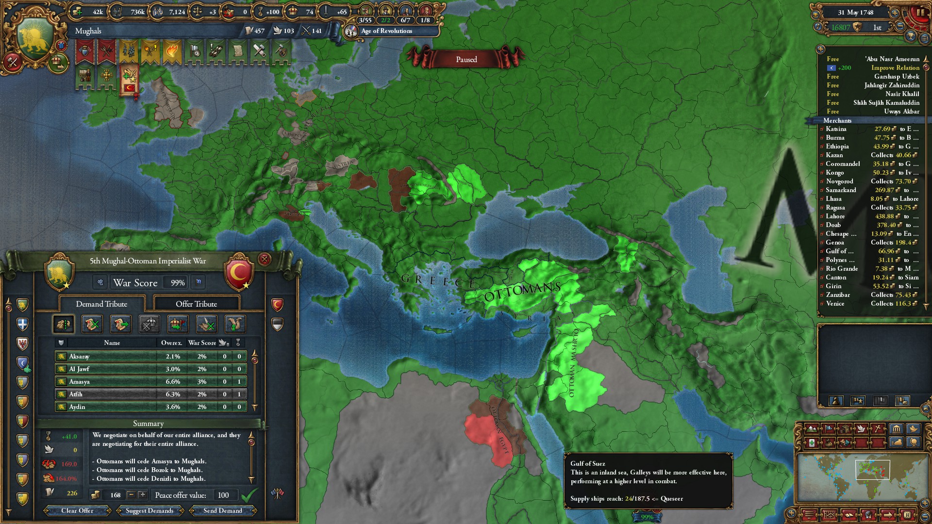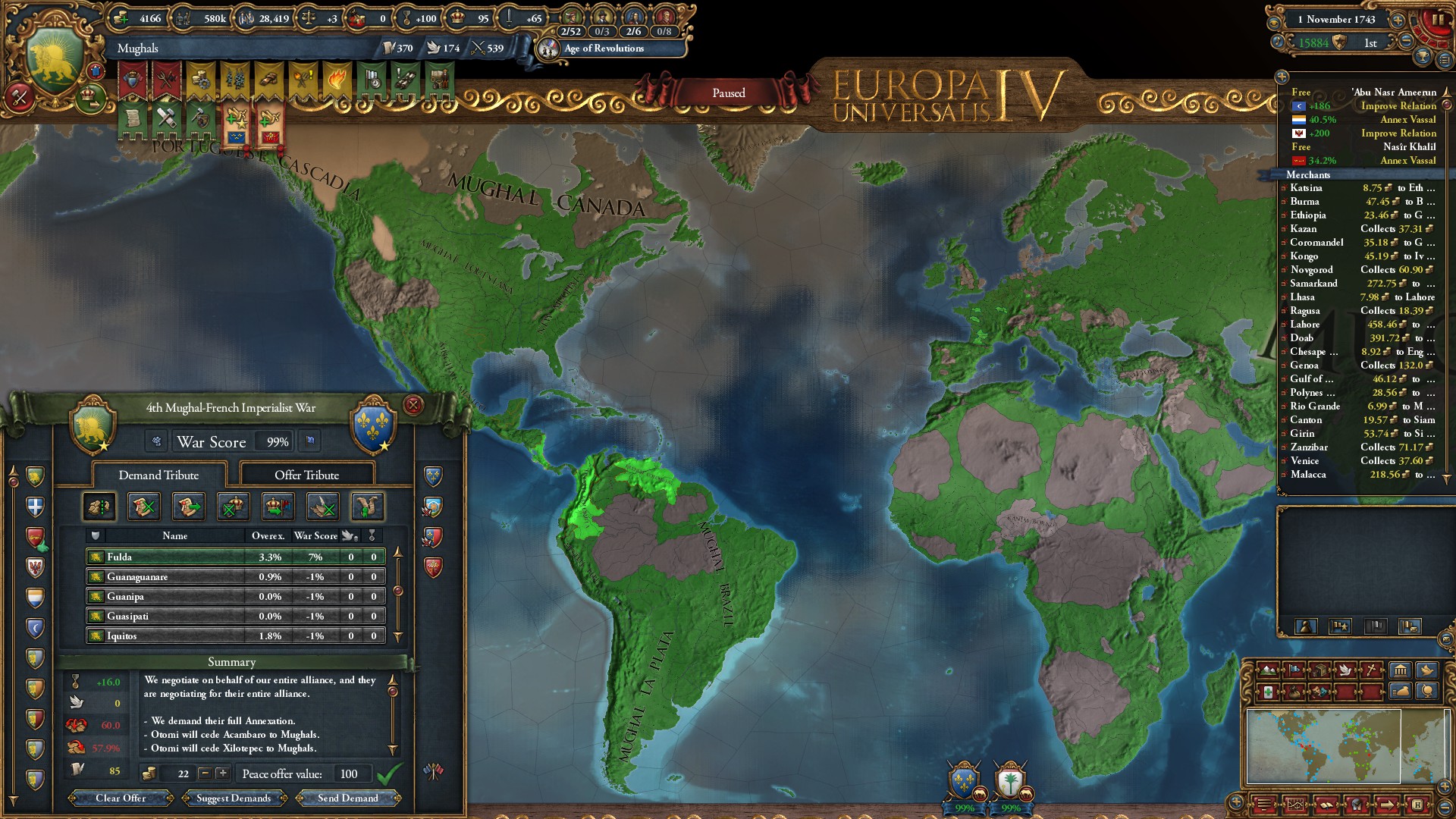 これにて旧大陸はムガル1国に統一されました。