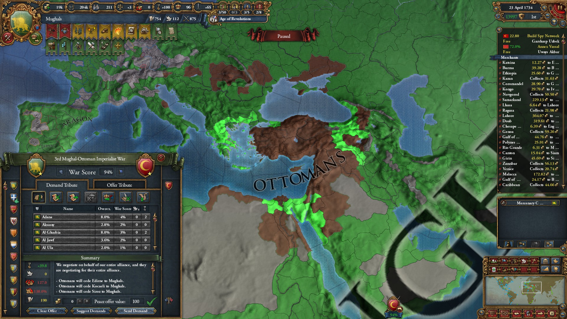 第4次オスマン戦終結。内陸国にしてやりました。