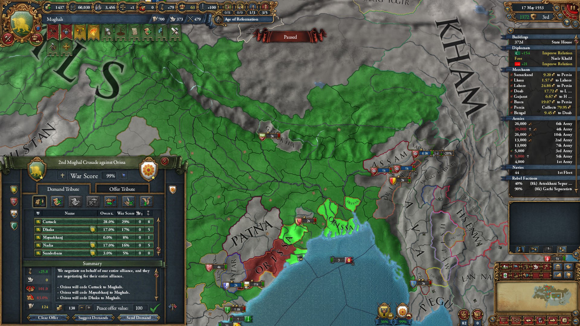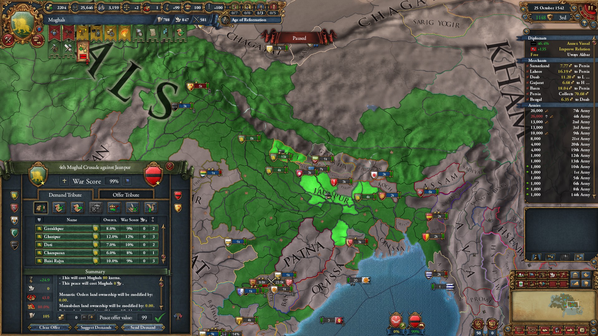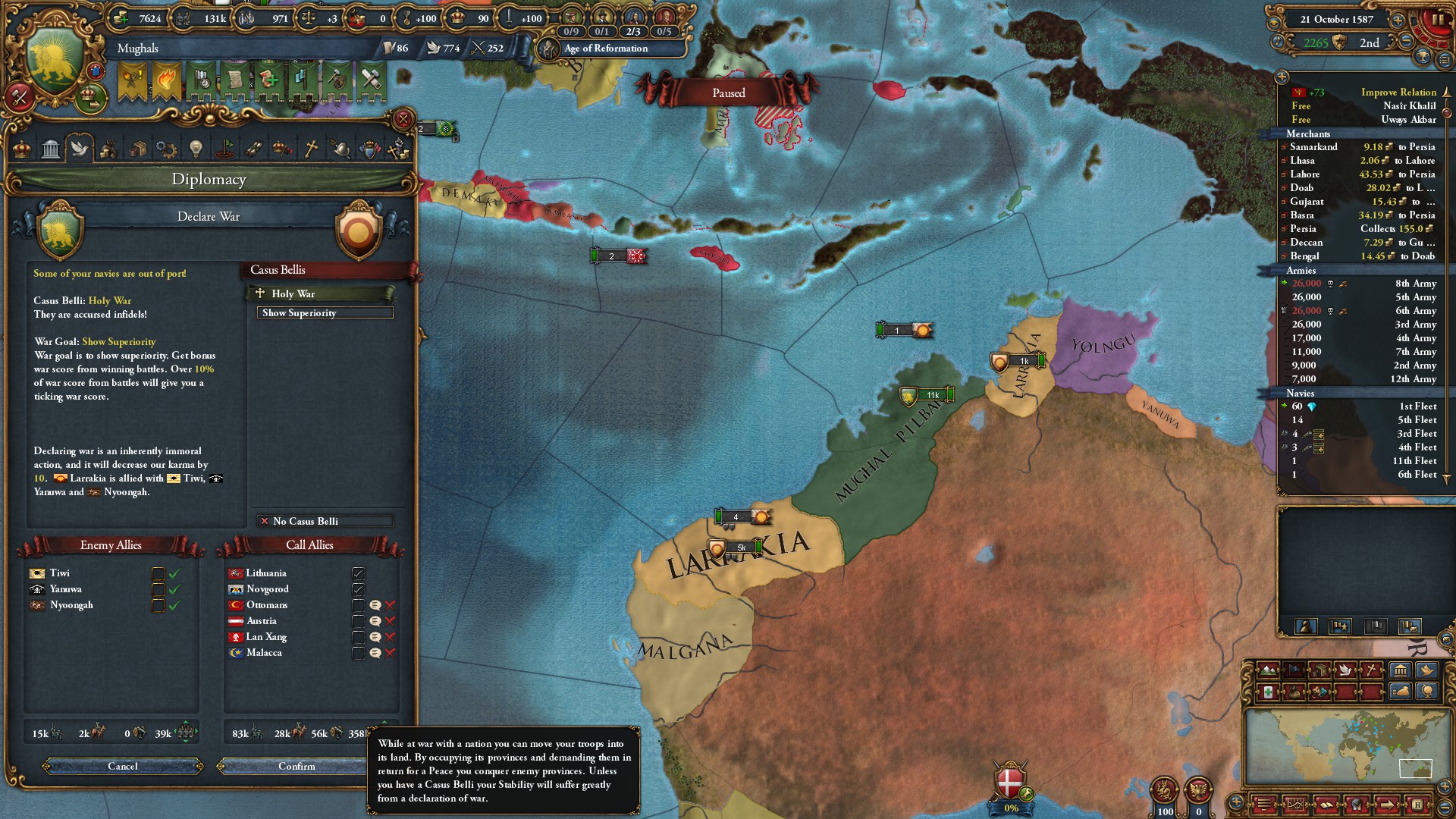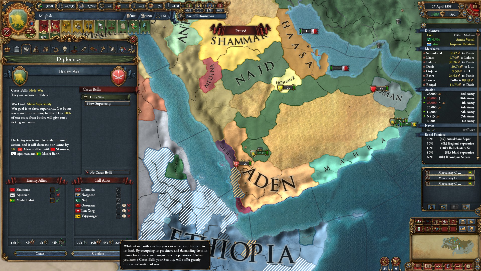 彼らへの宣戦はムガルも防衛戦争側に参戦することで抑止力になります。