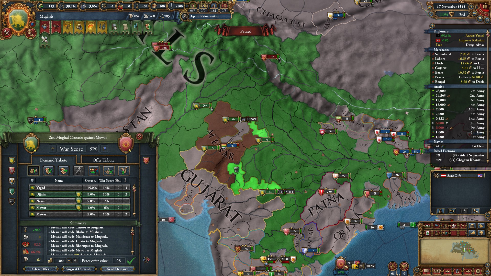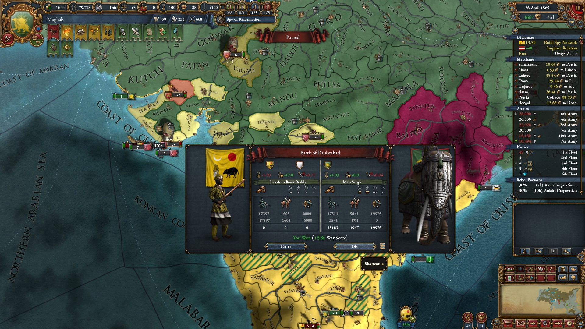 第2次グジャラート戦終結。ミッションに必要な領土を中心に割譲させました。