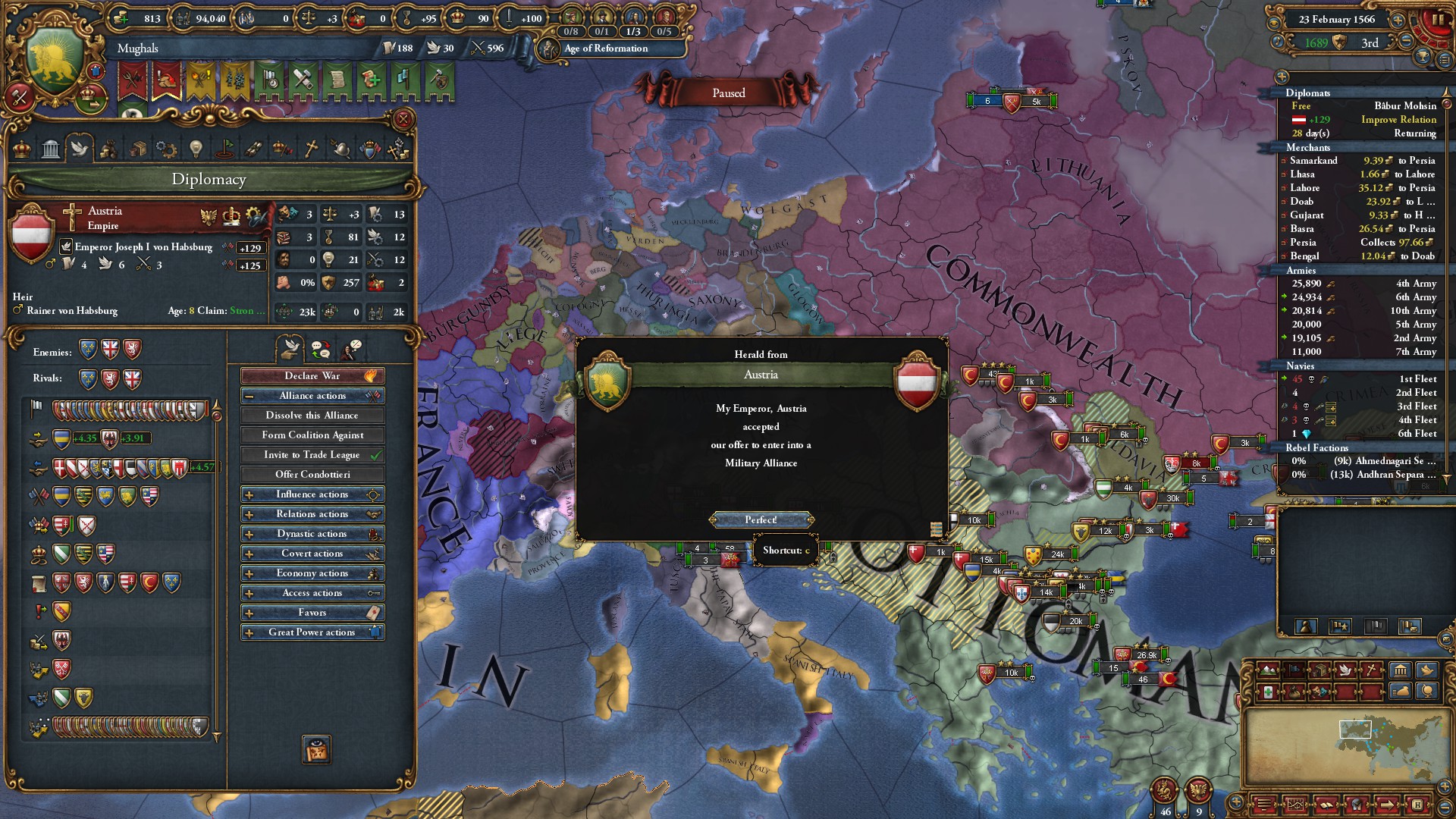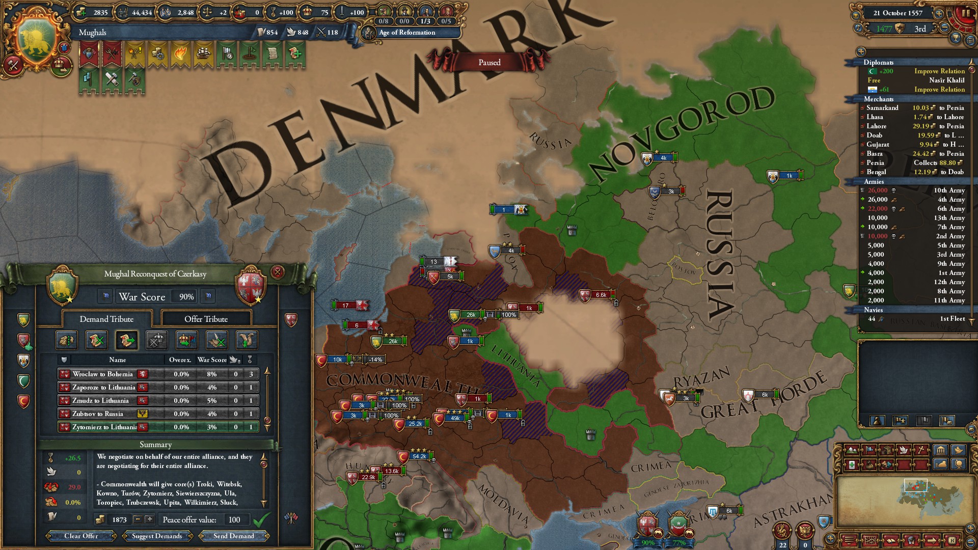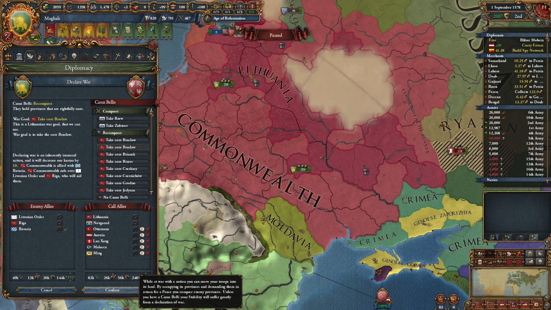 これは属国→再征服のチャンスです。オーストリアを誘ってノブゴロドの再征服CBで宣戦布告しました。
