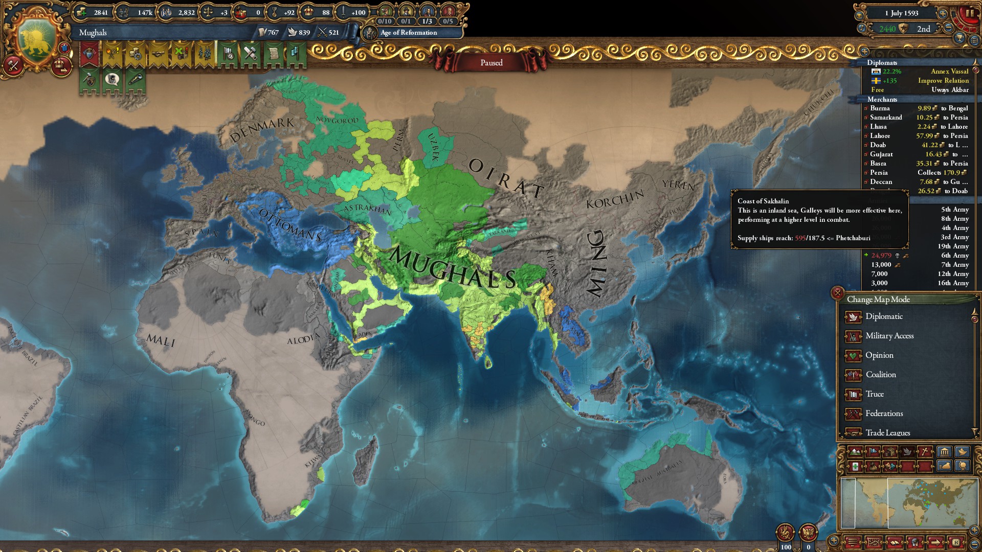 まだまだ、最大兵力はオスマンや明には及びません。恐るべし軍量アイデア…