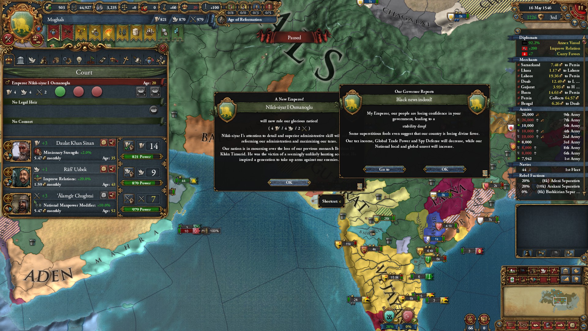 一方、ムガルも包囲網を組まれ始めましたが、大国はいません。