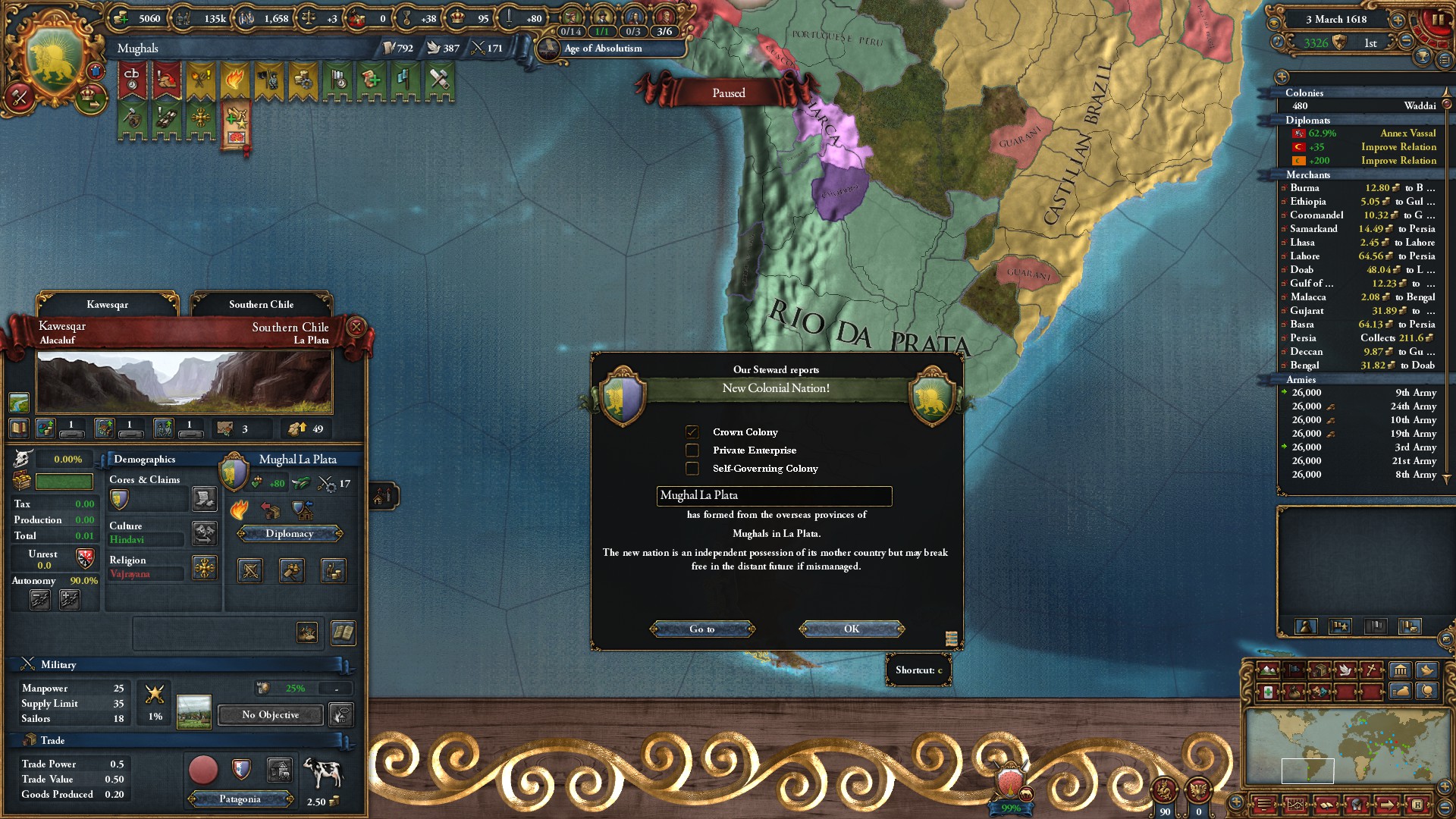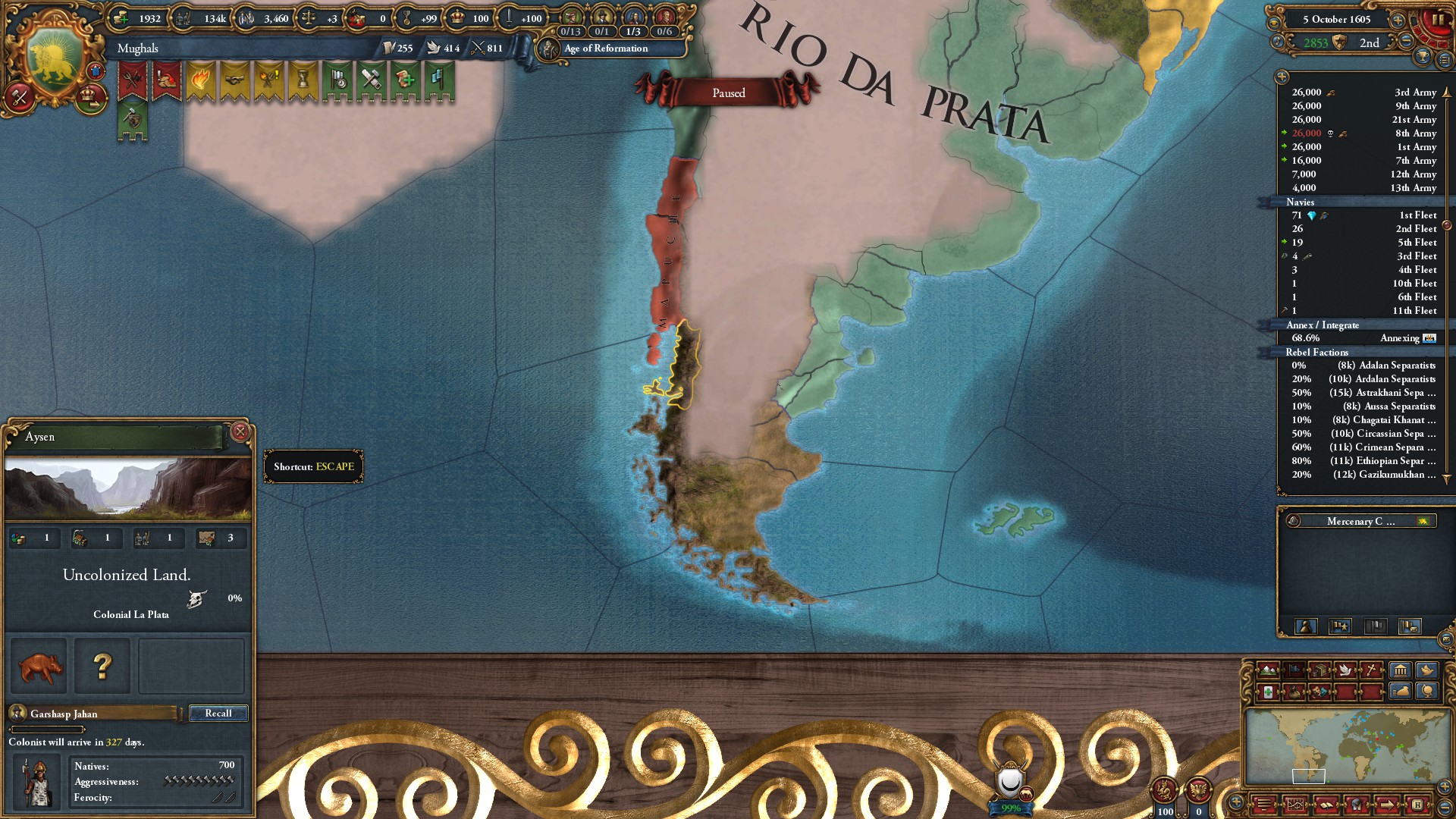 植民国家ムガル・ラプラタ成立。