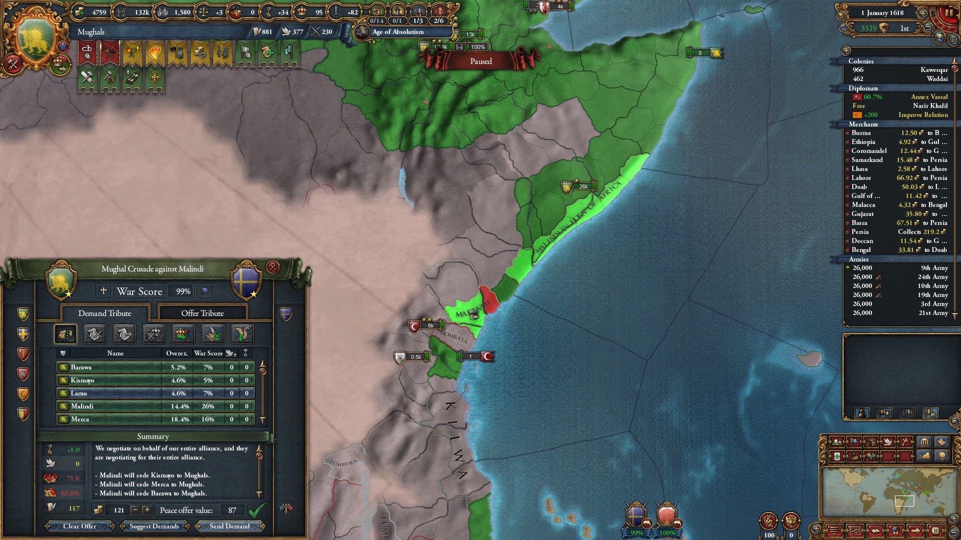 この後、マリンディから領土を奪った後は、しばらくスンニ国家への手出しは控えました。