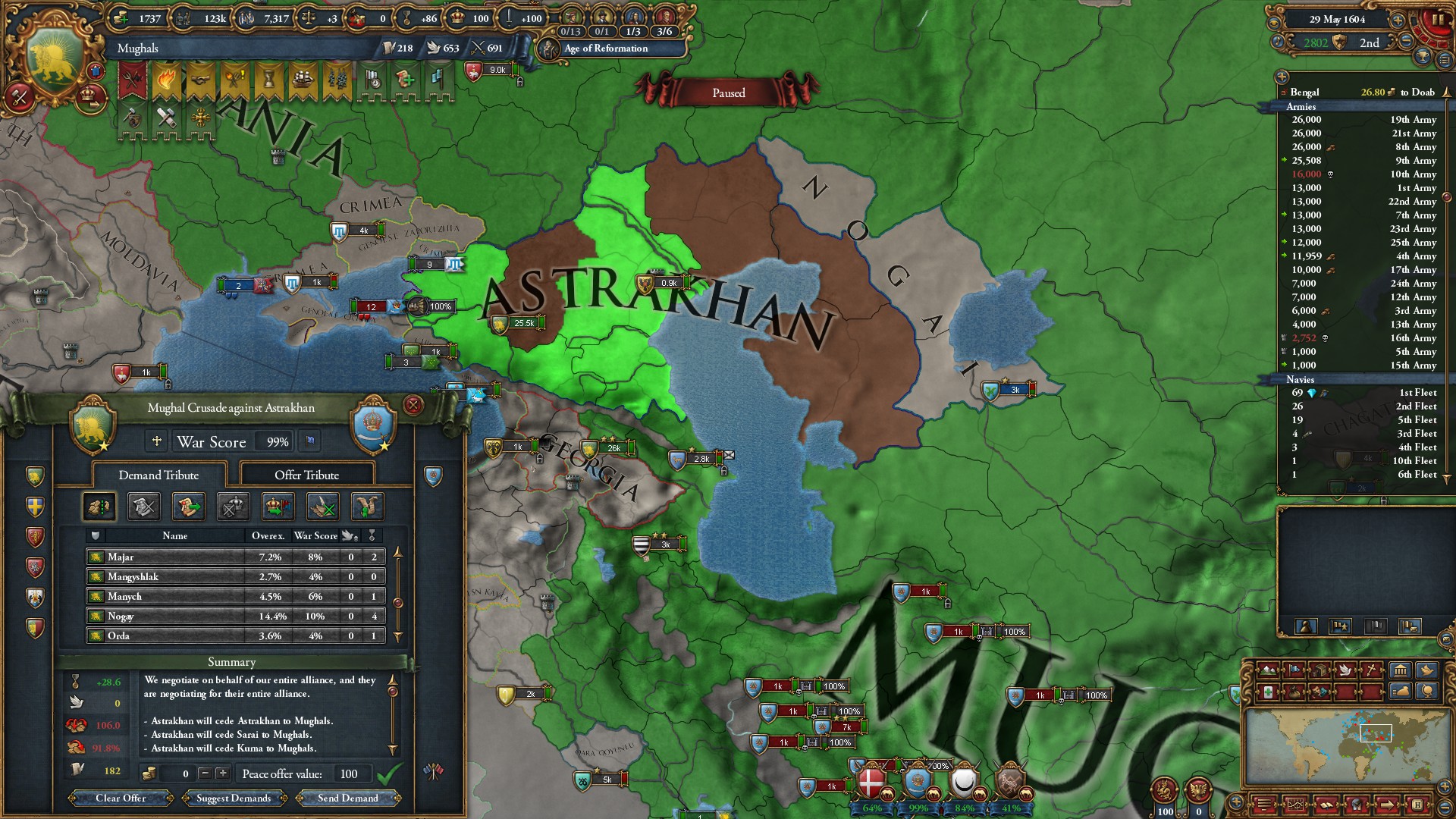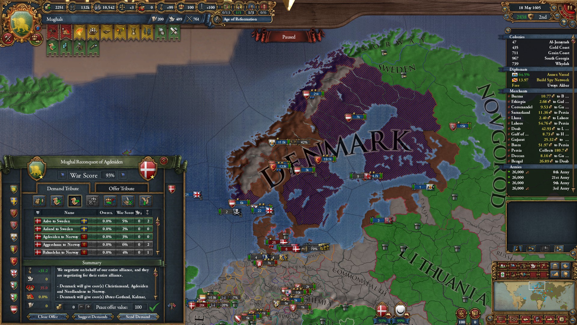 対デンマーク戦開始。オスマン、オーストリア、イギリスに丸投げして、全兵力を他の戦線に派遣します。