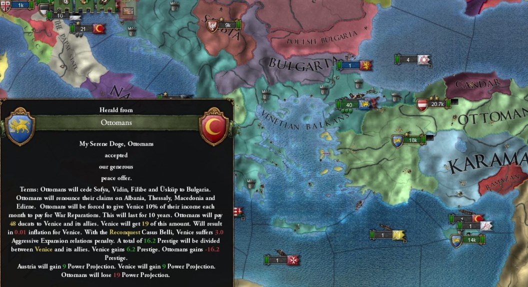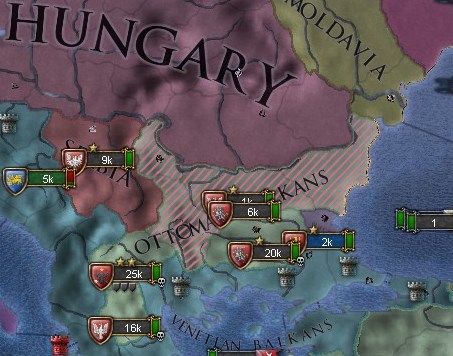 軍事通行権を与えずにアナトリア半島へ渡らせないなど地味な嫌がらせをしましたが、ブルガリアコアのうち2州はポーランドに抑えられてしまいました。