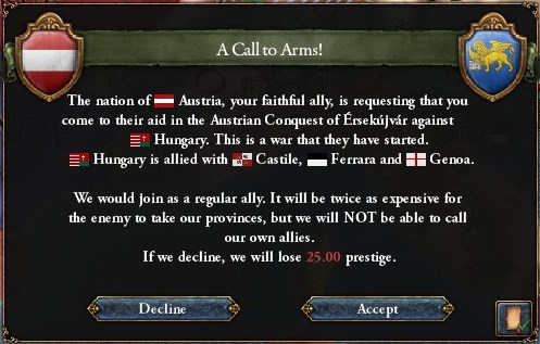 オーストリアには今後もまだまだいろいろな戦争に付き合ってもらいたいので、ここは受けるしかありません。