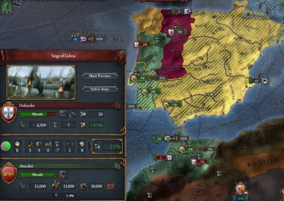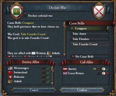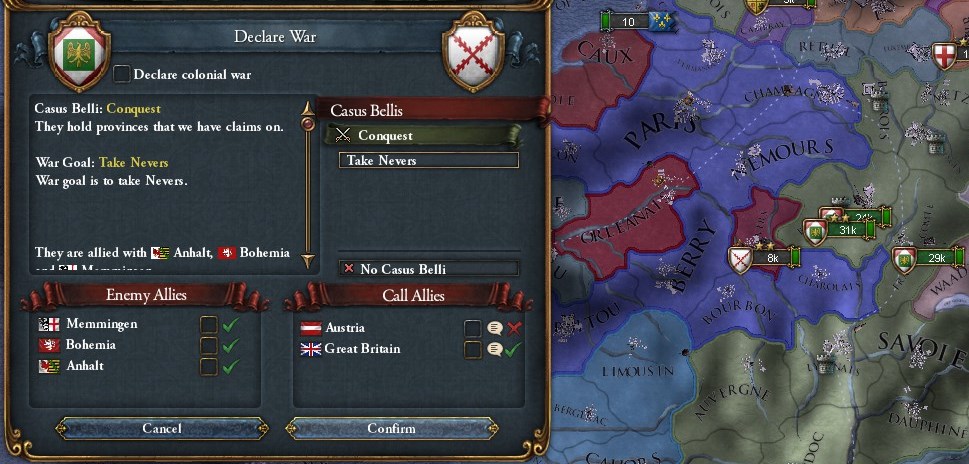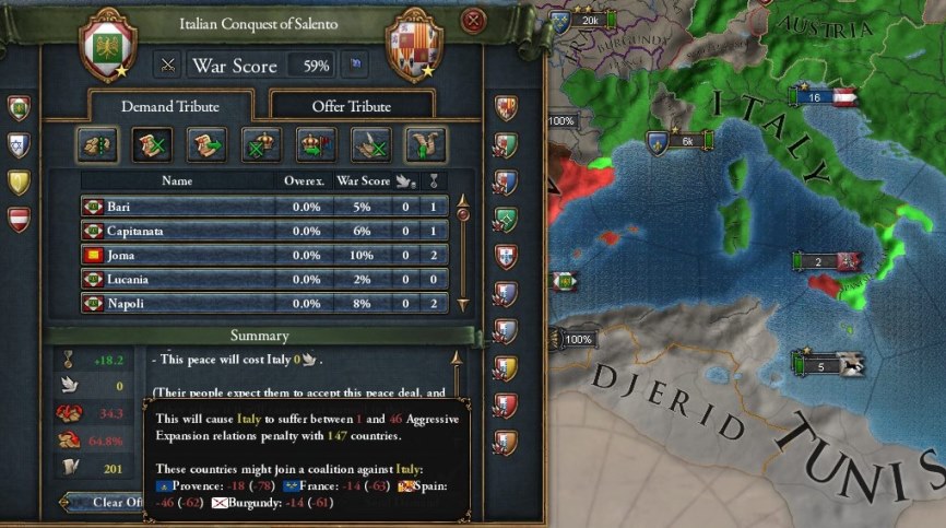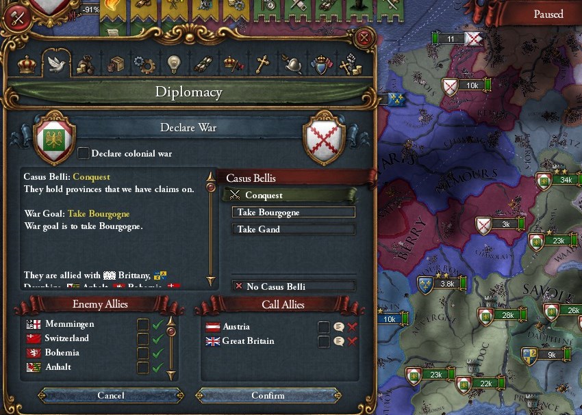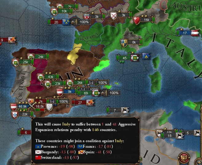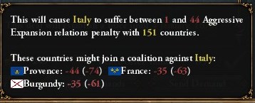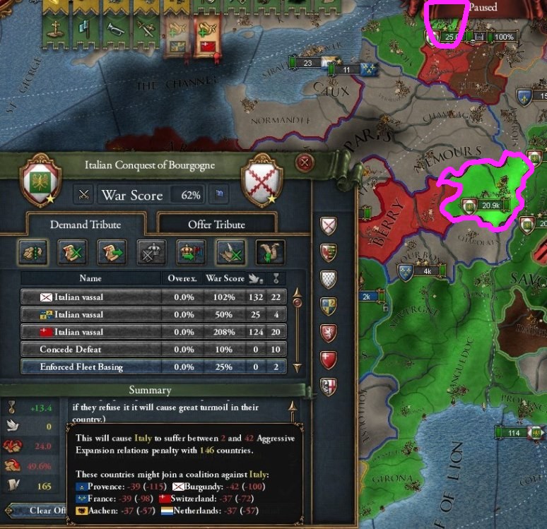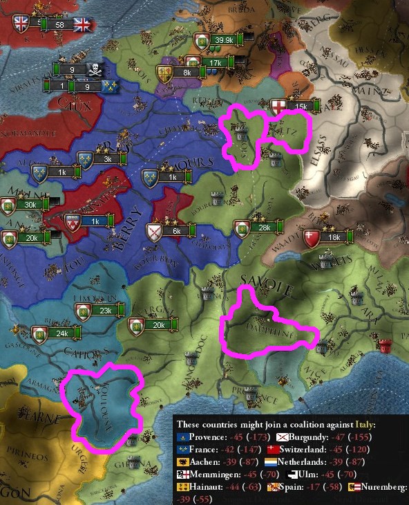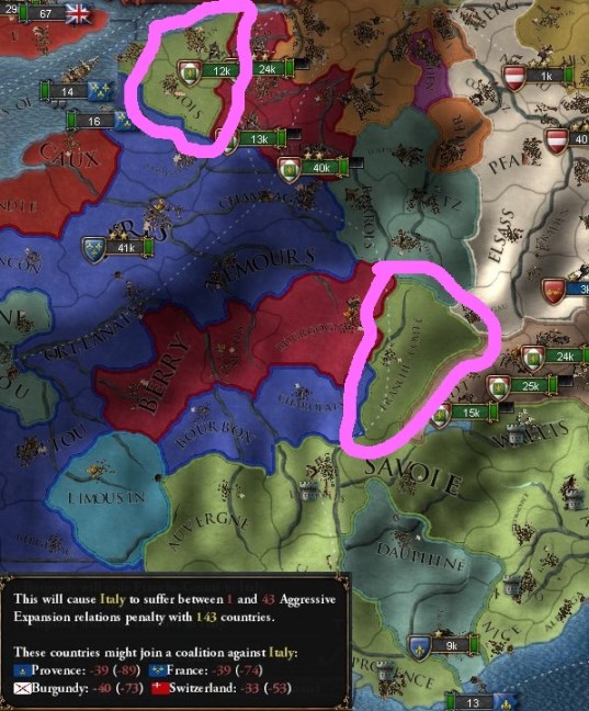 ブルゴーニュ自体は労なく占領したものの、完全併合になるため高い戦勝点が必要です。
