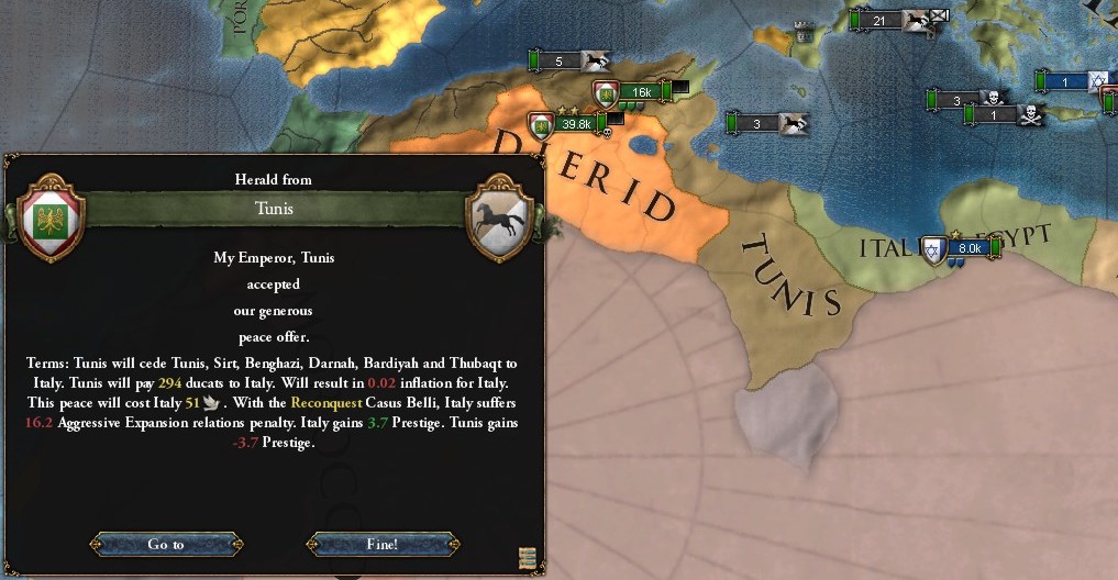 次回の征服を念頭に、国力を削ぐべく首都チュニスとおまけで東の数州を奪取。