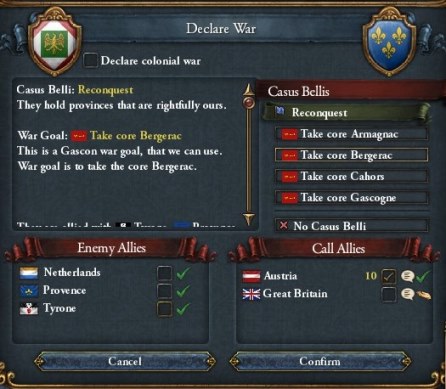空いた外交枠には、コア化せずに残しておいたLimousinをガスコーニュとして属国開放。