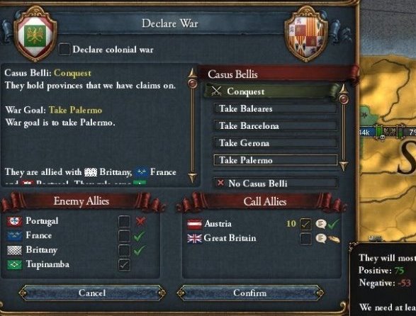 敵の同盟はポルトガル。こちらはオーストリアが参戦してくれます。