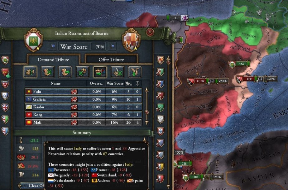 イタリアとガスコーニュで計6州を奪取。そしてカタロニアを解放。