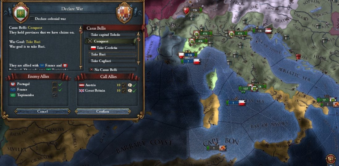 イタリア半島を取り戻すべく、今回は初めて直接宣戦。