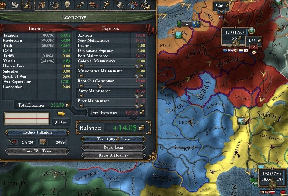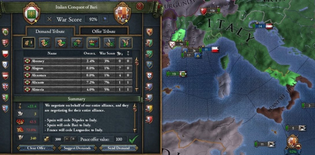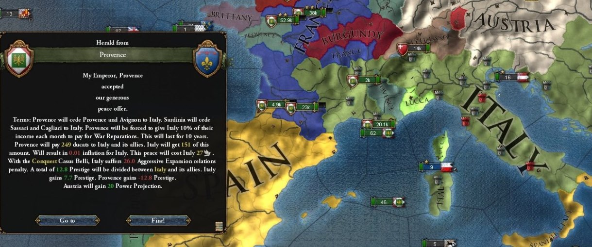 Provence州を奪って、ジェノバノードでの影響力を上げれば収入に直結です。