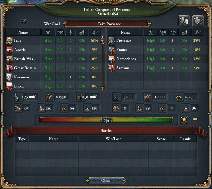 1654年、プロヴァンスに宣戦です。相手の同盟はフランス・オランダ・サルディニア。
