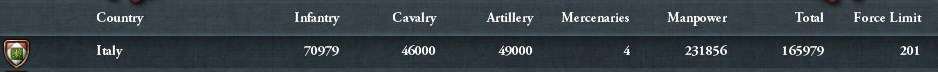 15連隊ほどの傭兵歩兵と、その半分ほどの正規の騎兵・砲兵を増強していました。