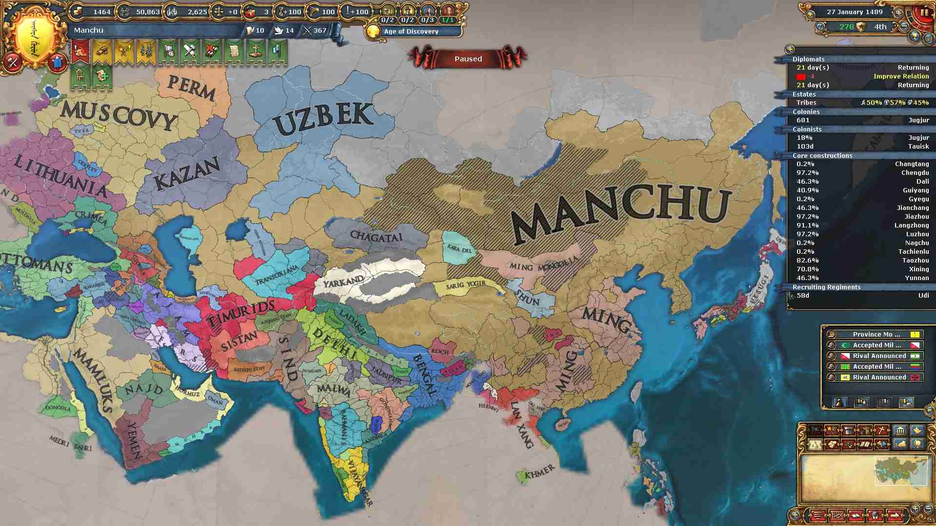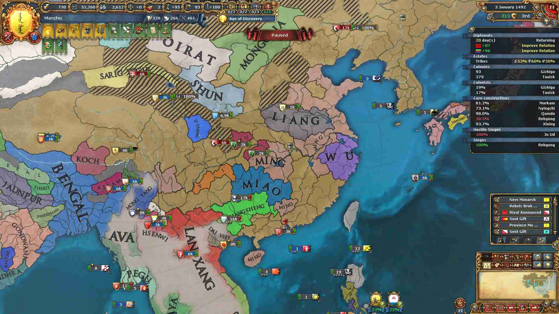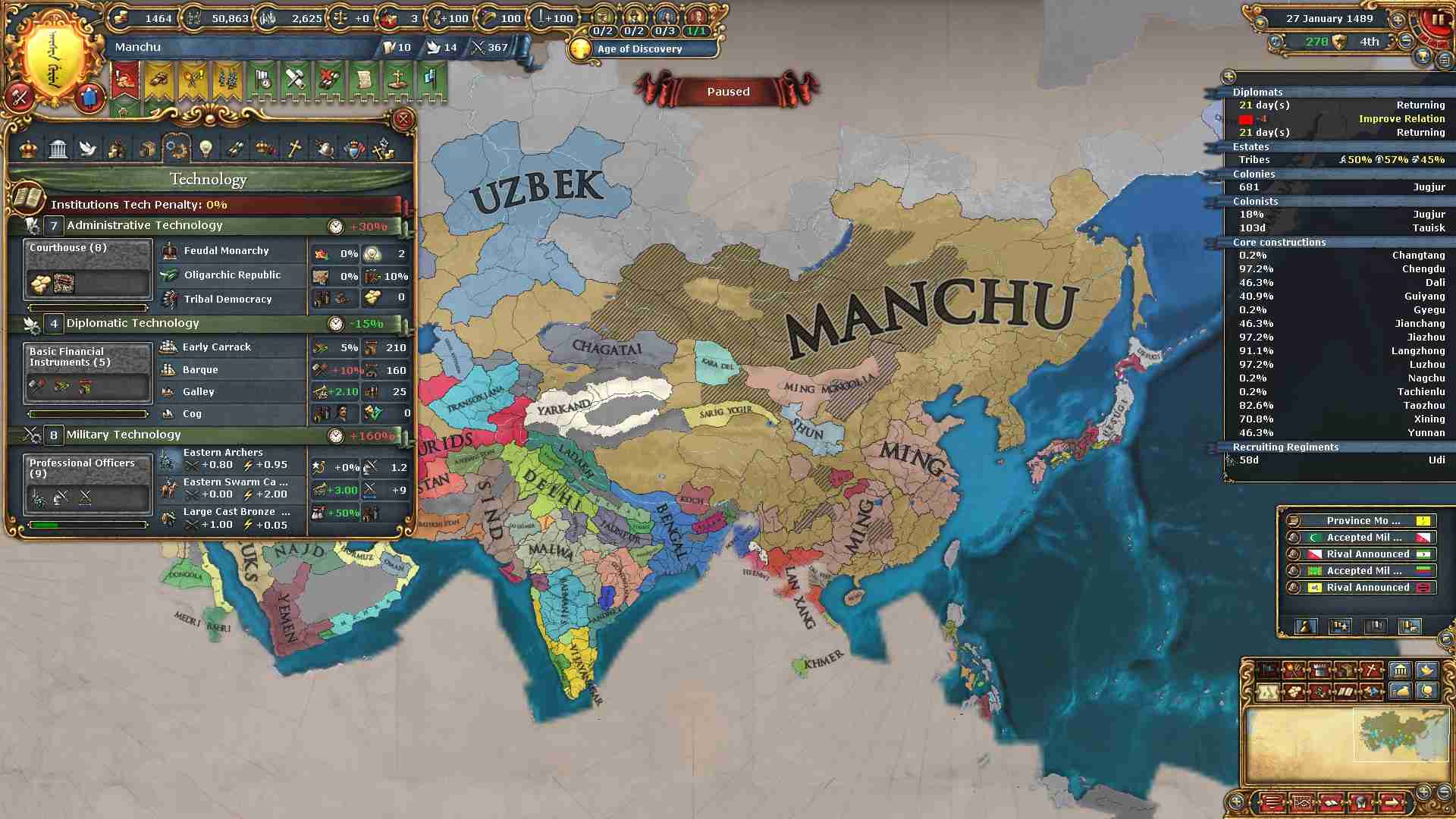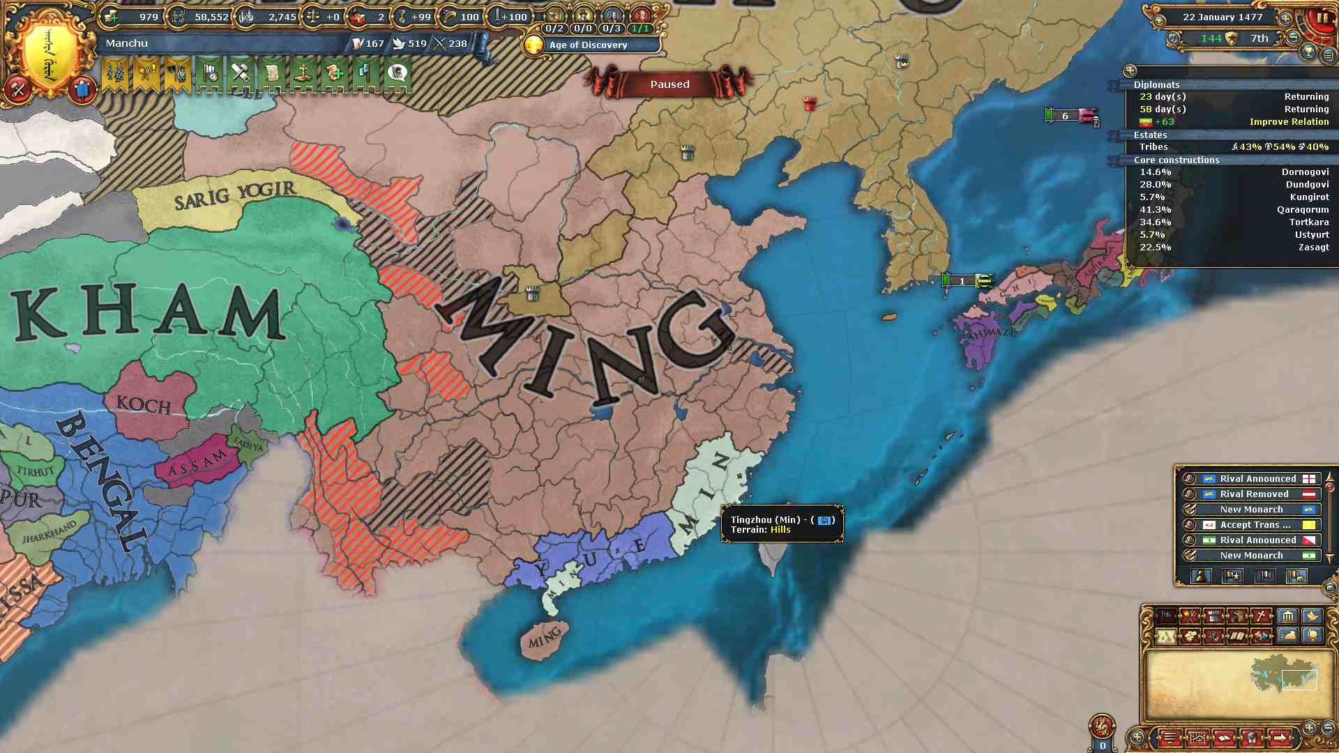 西側が落ち着いたのでMingの朝貢国であるOirat及びKoreaを征服しました。