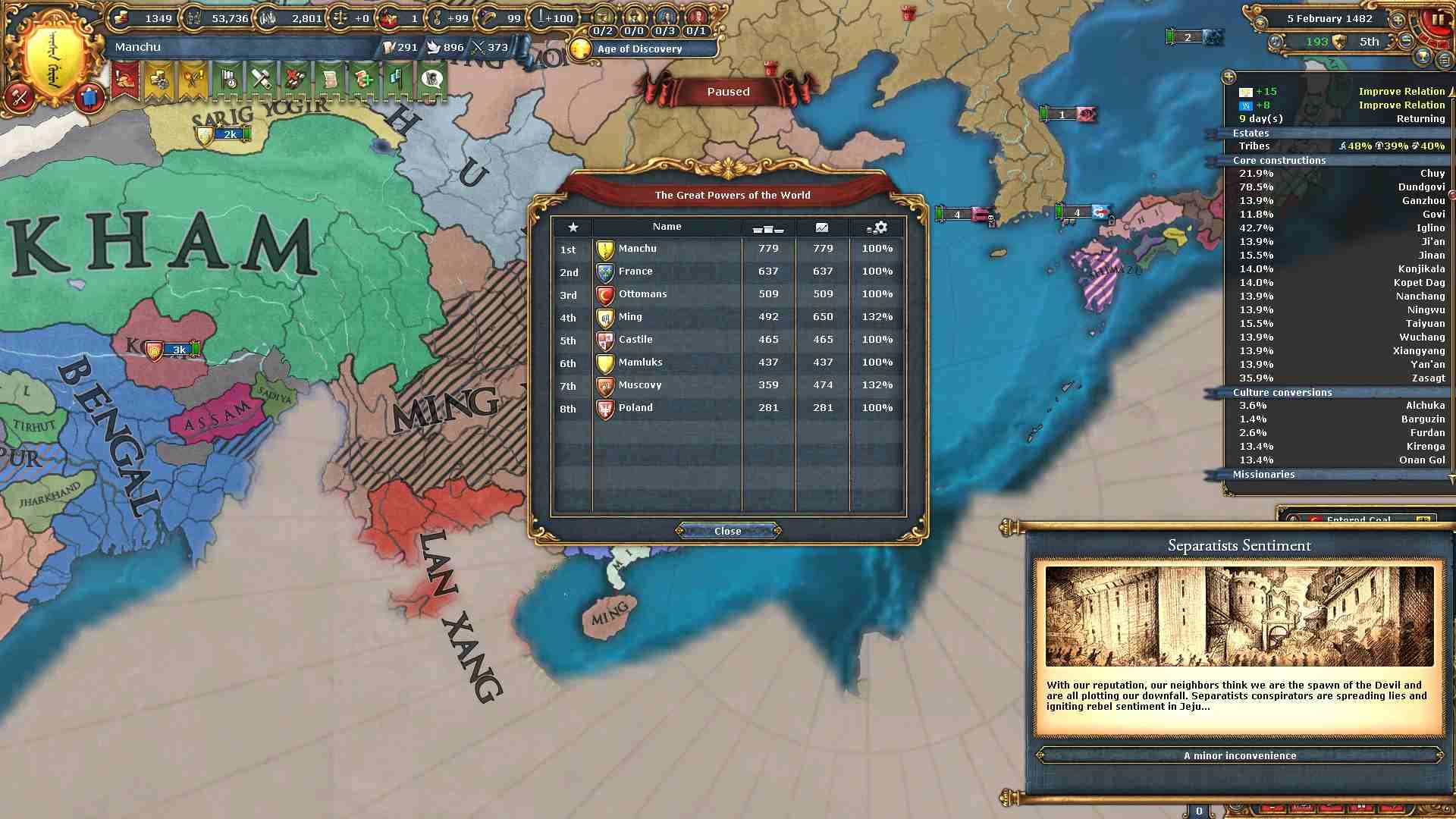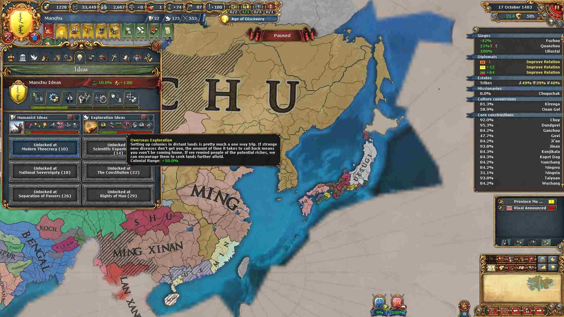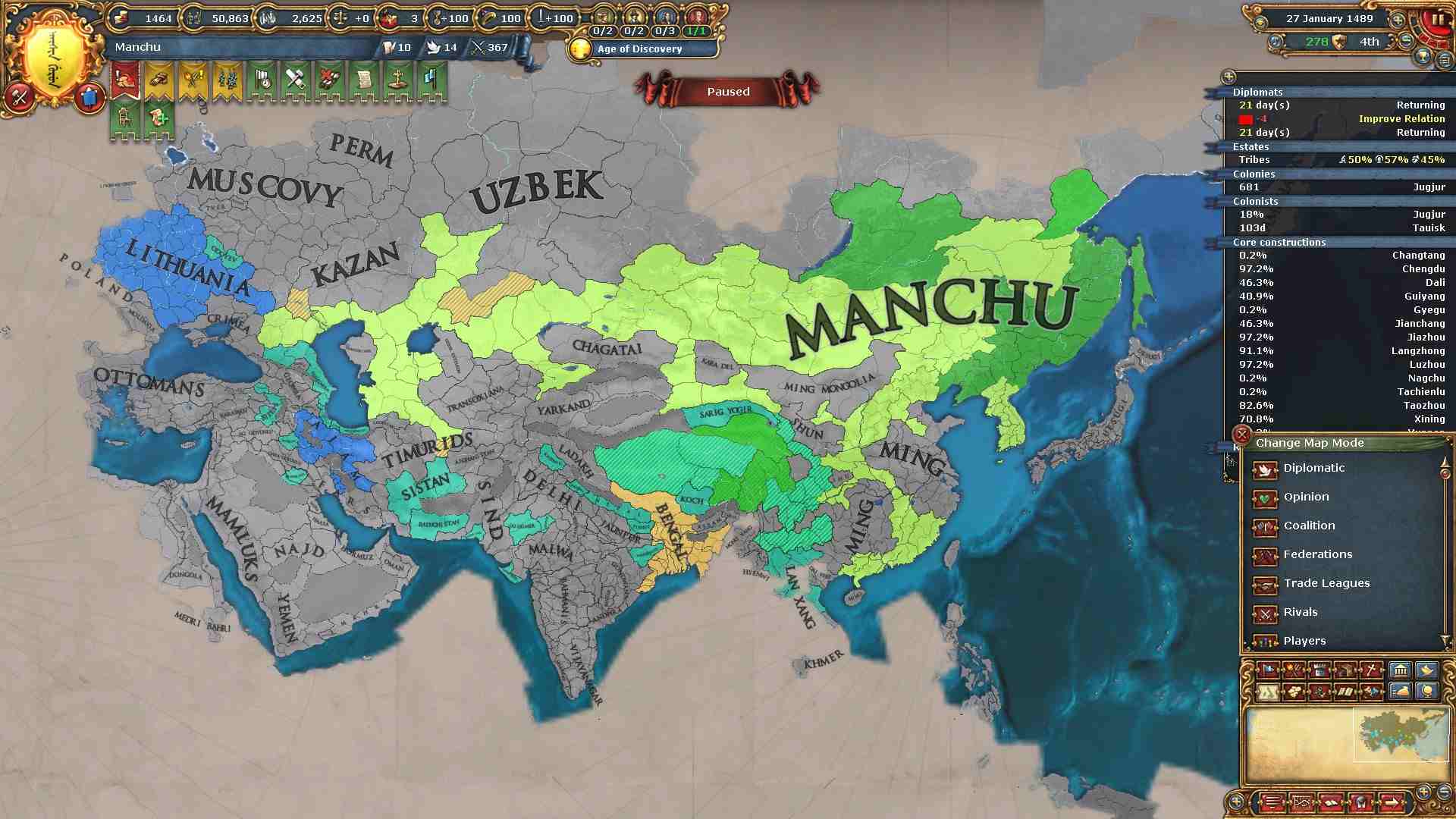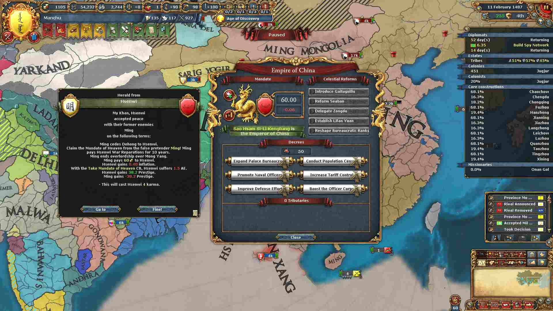 西側が落ち着いたのでMingの朝貢国であるOirat及びKoreaを征服しました。