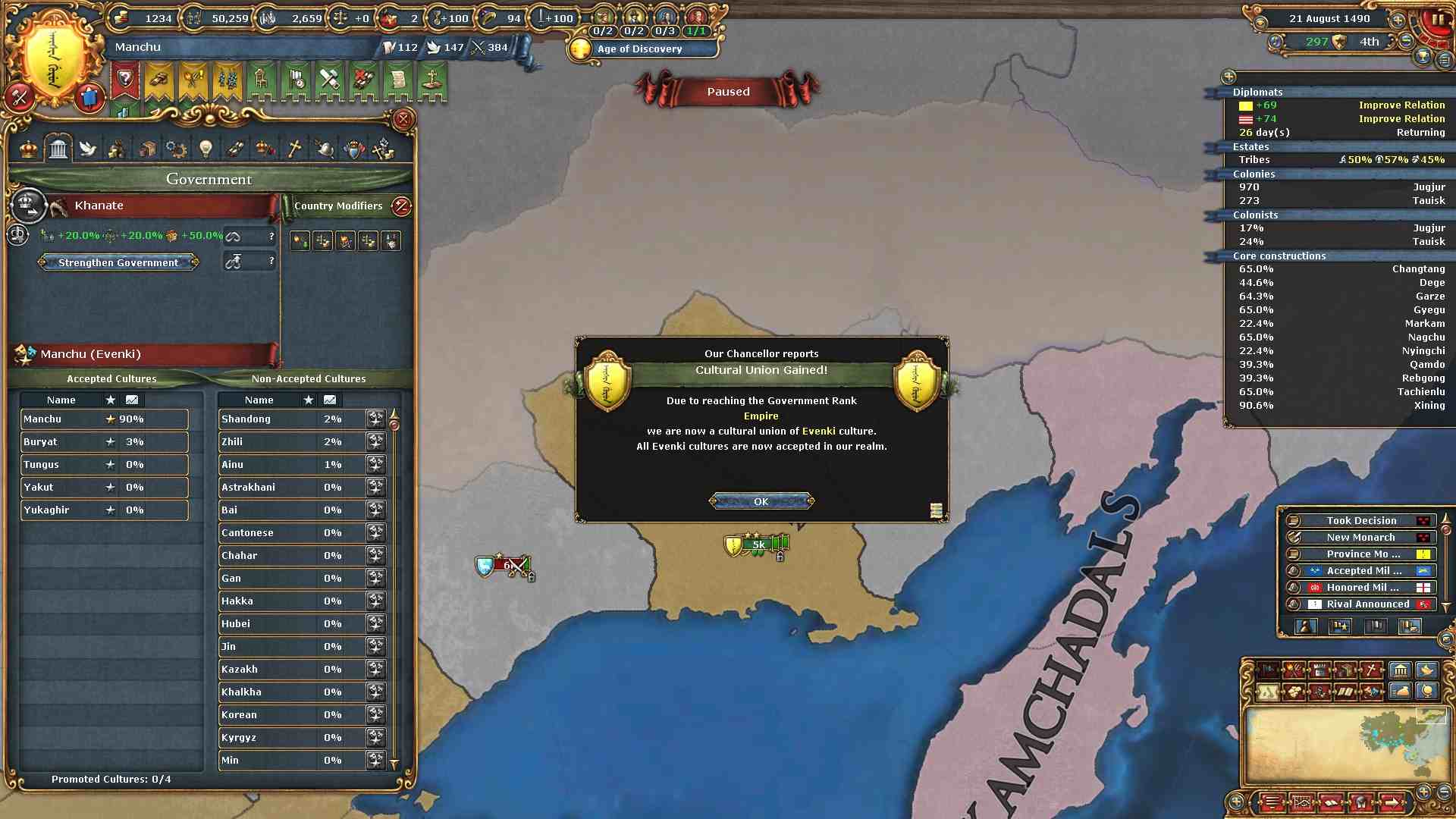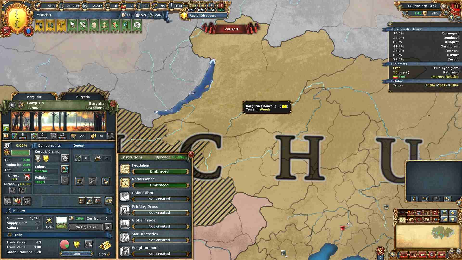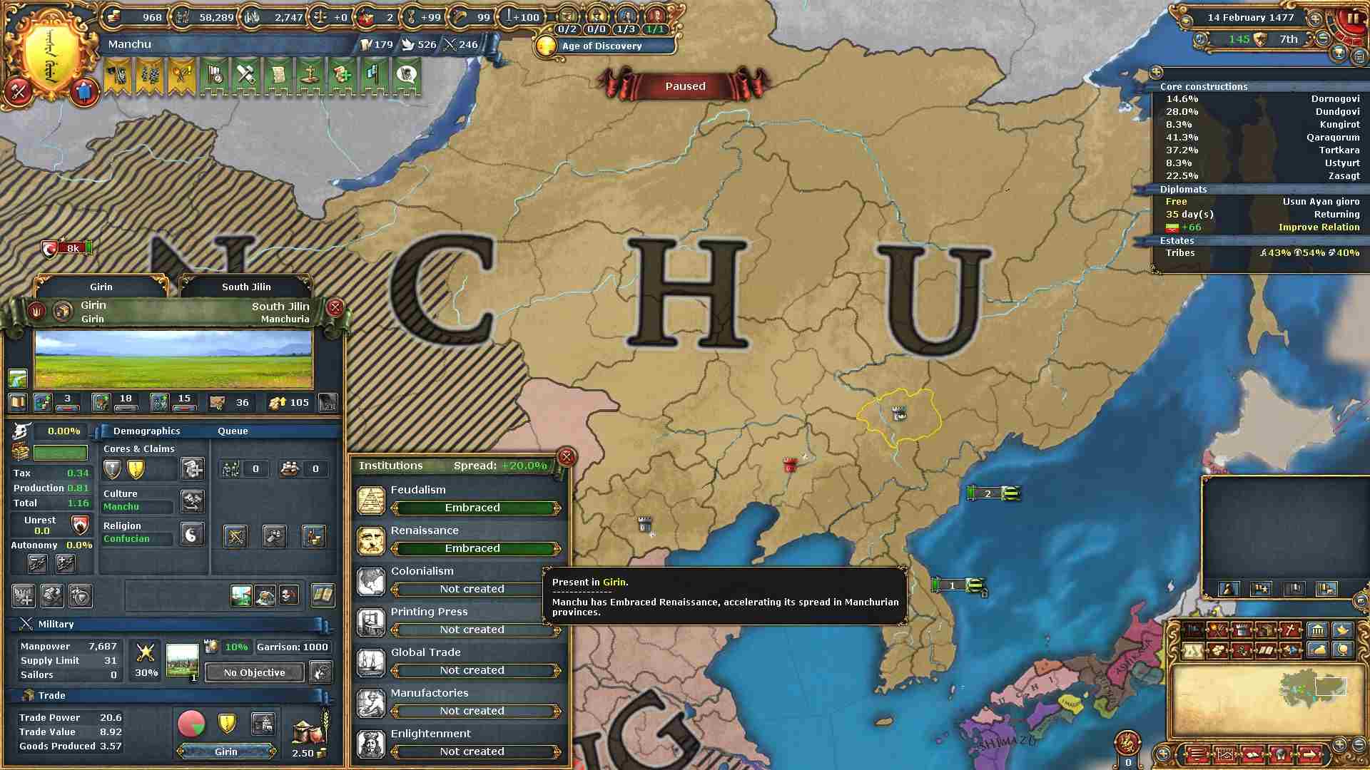 自然伝播を待っていましたが無理そうなので首都Girinを受容させました。