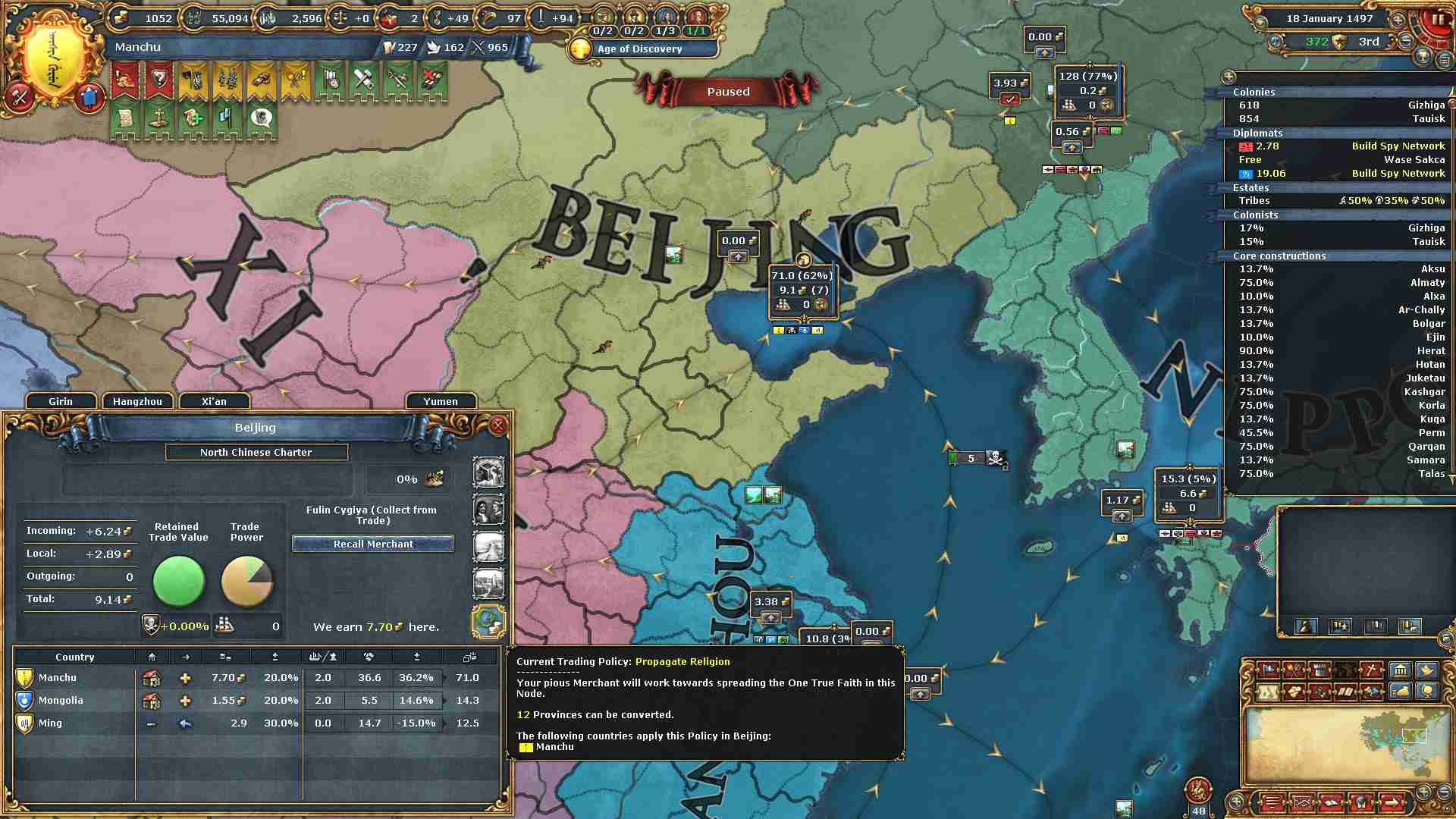 商人を派遣すると、リージョン内の州に自国の宗教を広めることが出来ます。