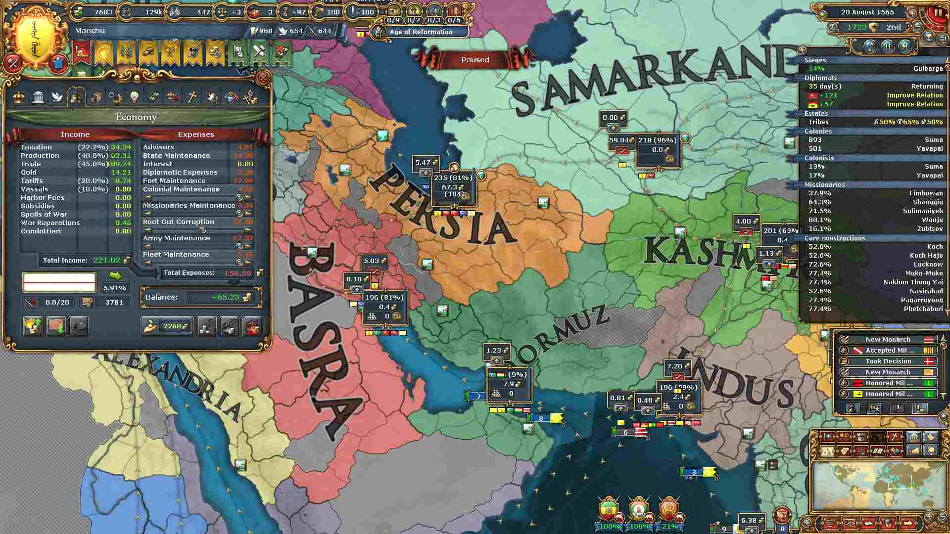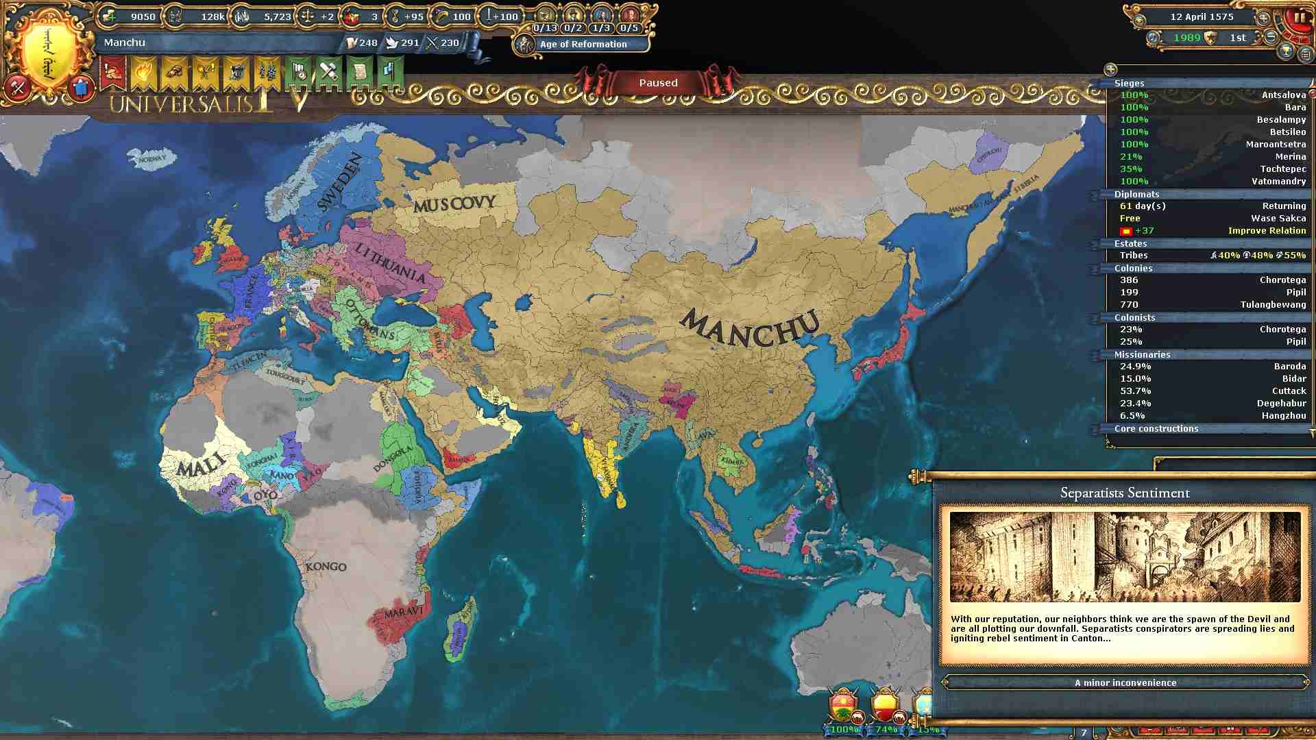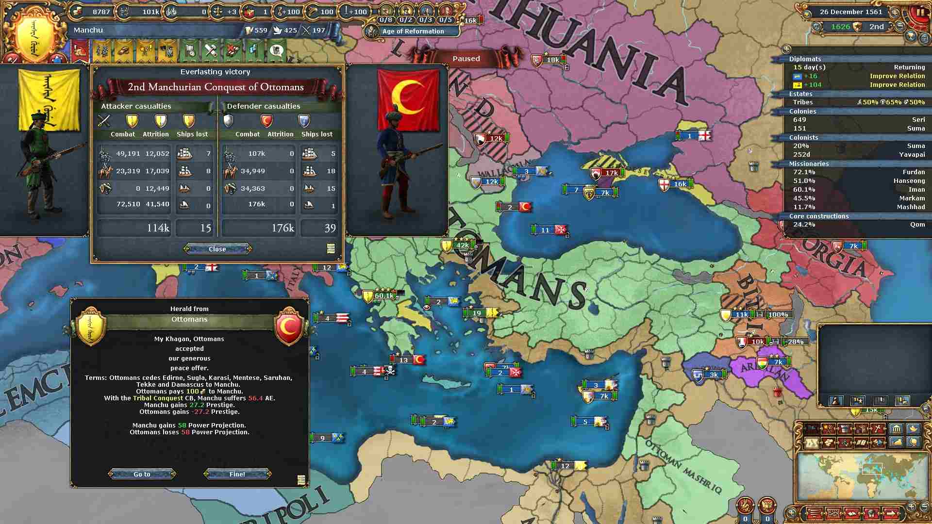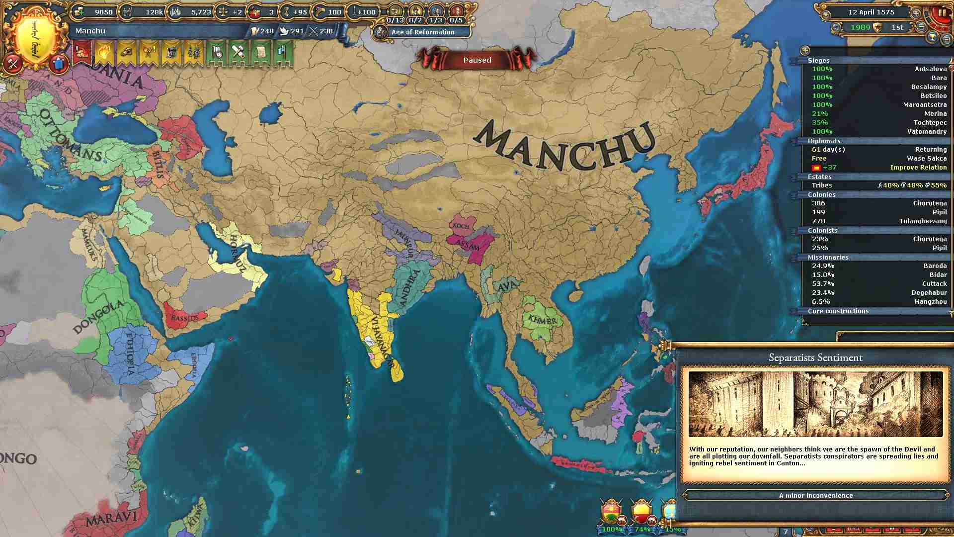中華皇帝であったAyutthayaを完全併合した為、中華皇帝が消滅しました。