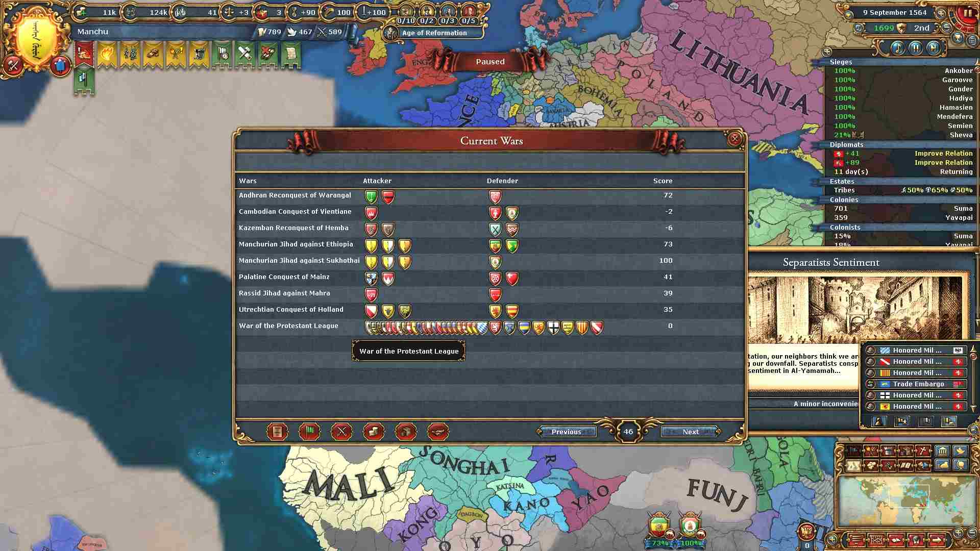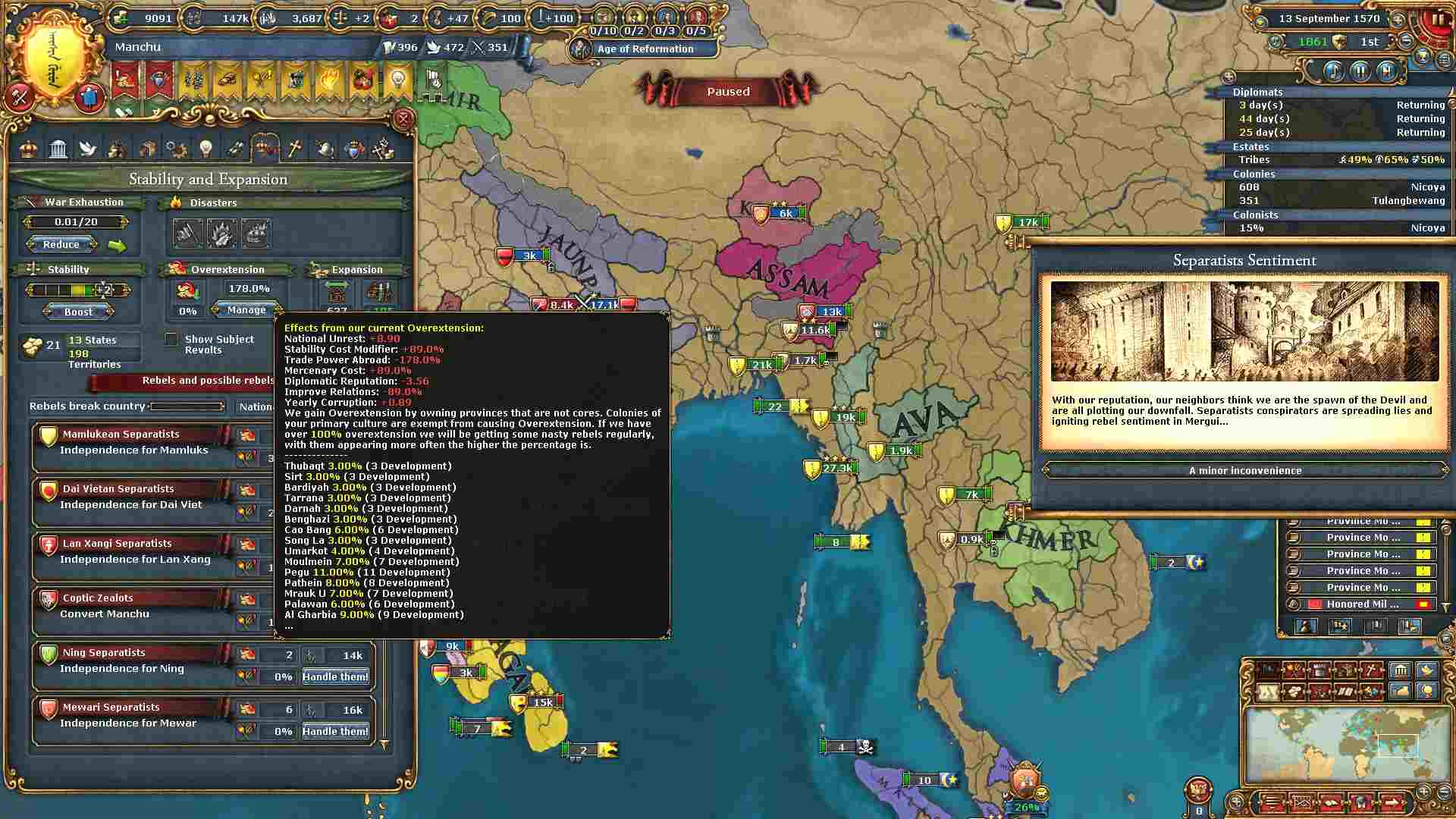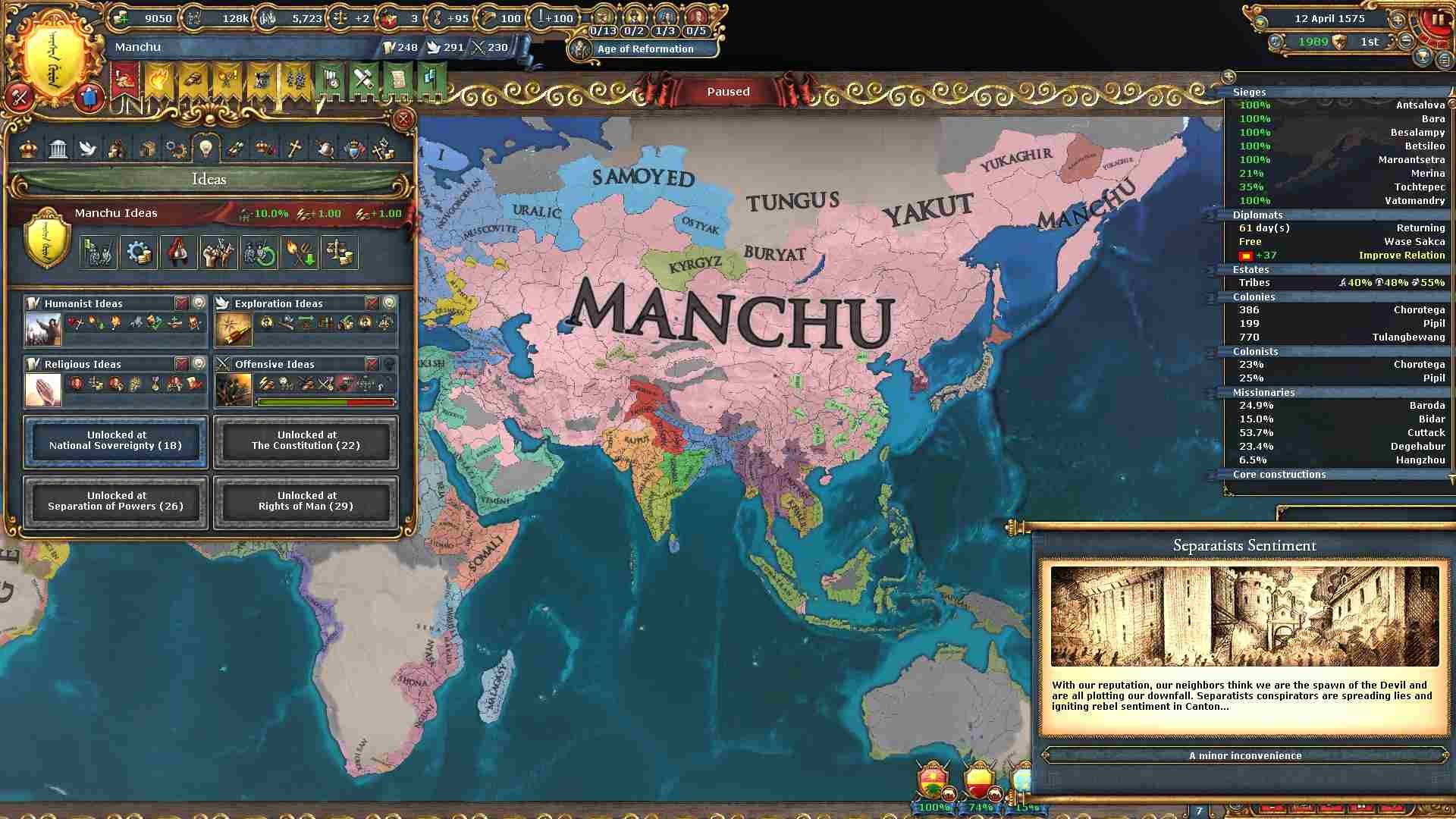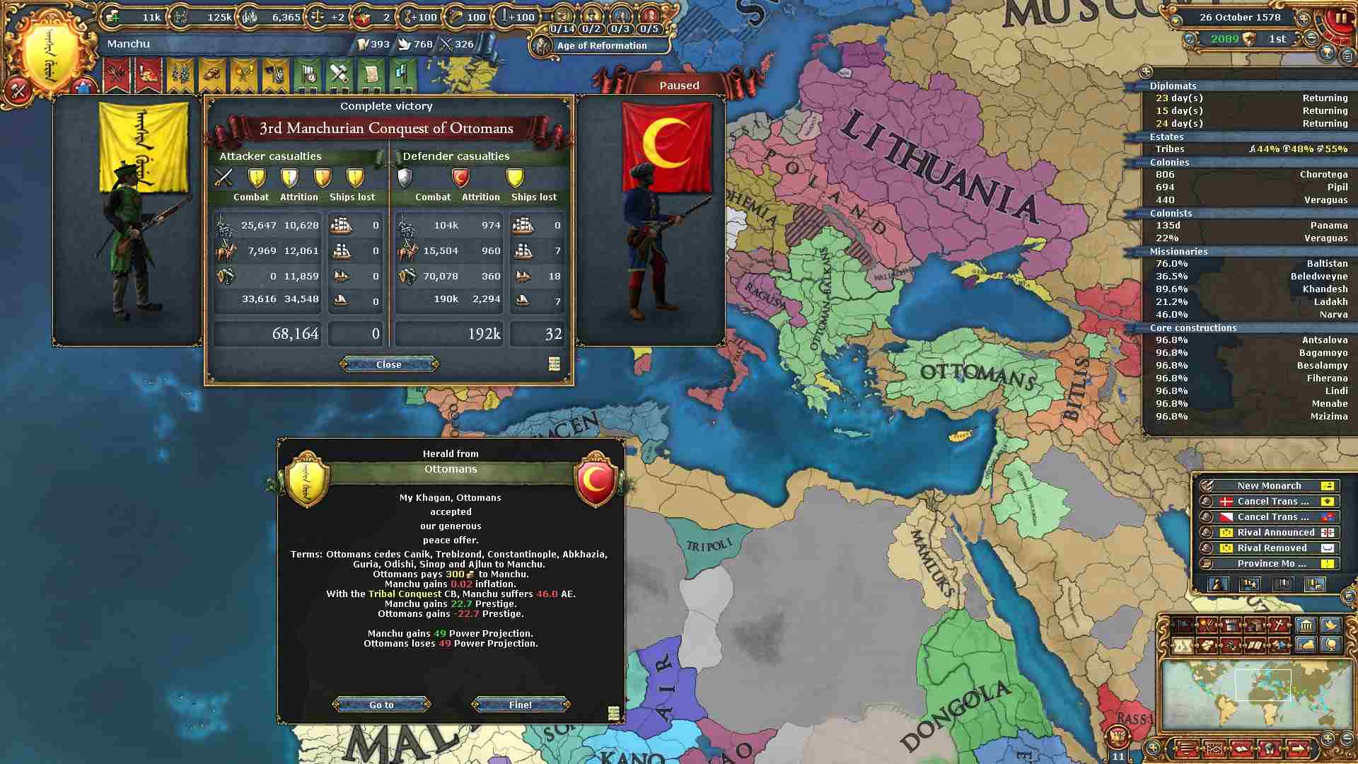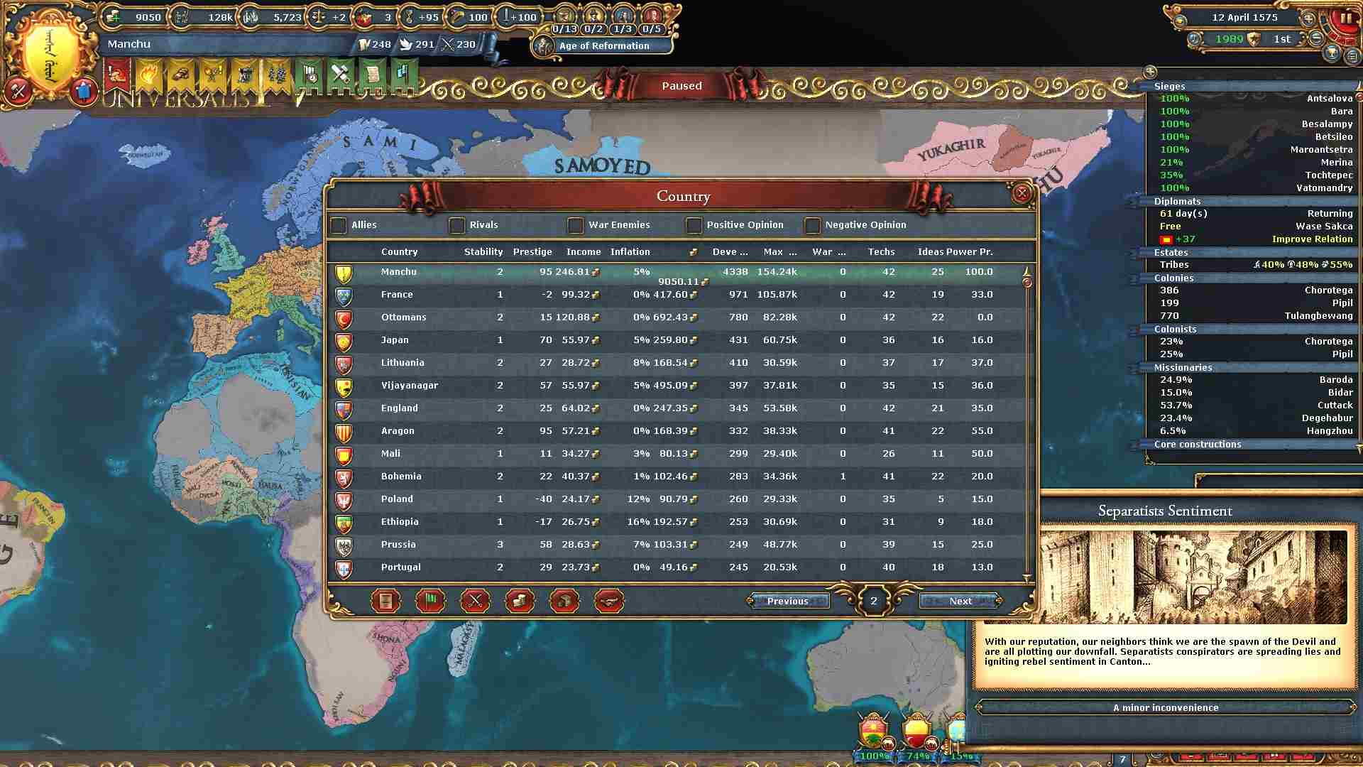 中華皇帝であったAyutthayaを完全併合した為、中華皇帝が消滅しました。