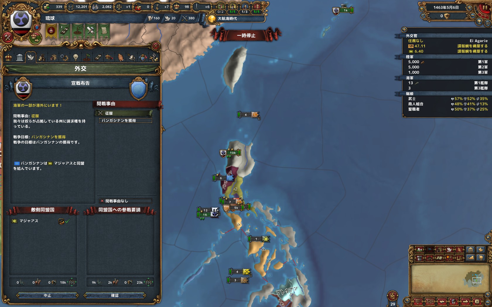 外交技術が23になる。前にあった帝国主義CBを得たというポップアップが出てこなくなった? 見落としただけか?