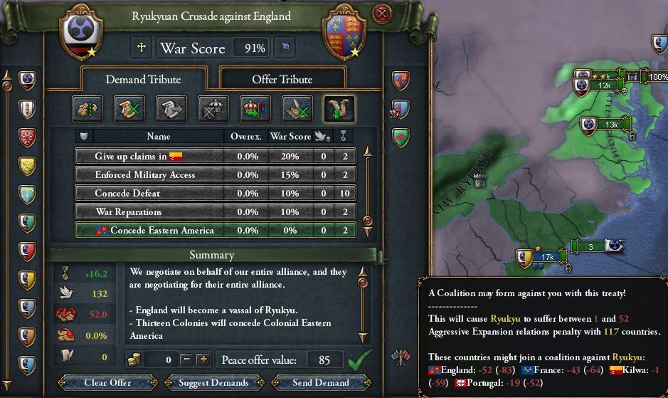 属国イングランドを併合完了 植民地国家のイングリッシュブラジルとニューイングランドはそのまま琉球の植民地国家になった