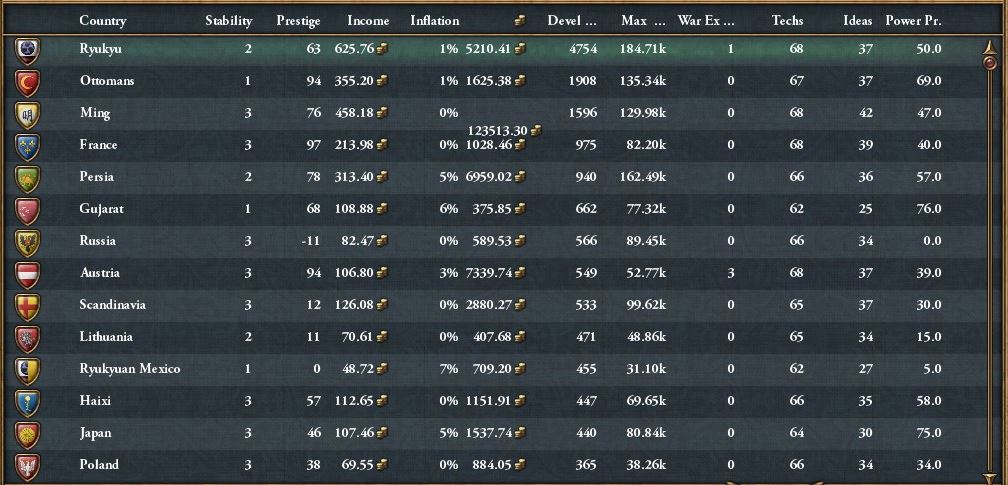 開発度はオスマン3倍になり技術・アイデアでも数だけは互角。いまだにオスマン・明をライバルに指定できているのでPPも50を超えています