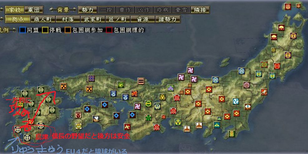 まとめると、信長の野望で初心者お勧め国家といわれる島津家(最南端)より